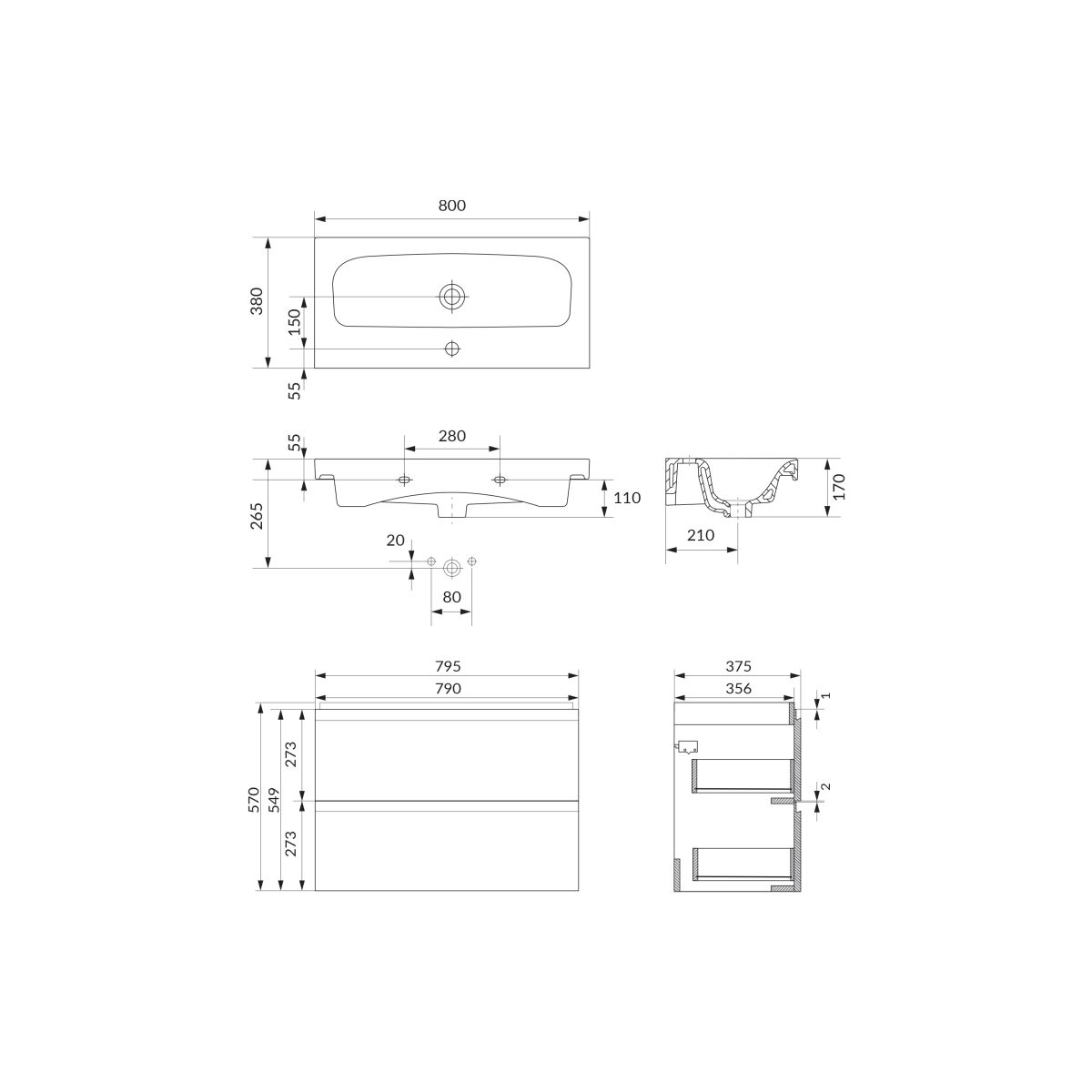 Das Set besteht aus einem Waschtischunterschrank MODUO SLIM zum Selbstaufbau und einem Keramikwaschbecken MODUO SLIM 80. Dank seiner reduzierten Tiefe kann das Set sogar in schmalen Räumen montiert werden. Die Front des Schranks besteht aus MDF-Platten, die in Kaschmirfarbe lackiert und matt veredelt sind. Der Schrank verfügt über zwei volle Schubladen, praktische, gefräste Griffe und ein Soft-Close-System. Wir empfehlen die Verwendung eines platzsparenden Siphons.