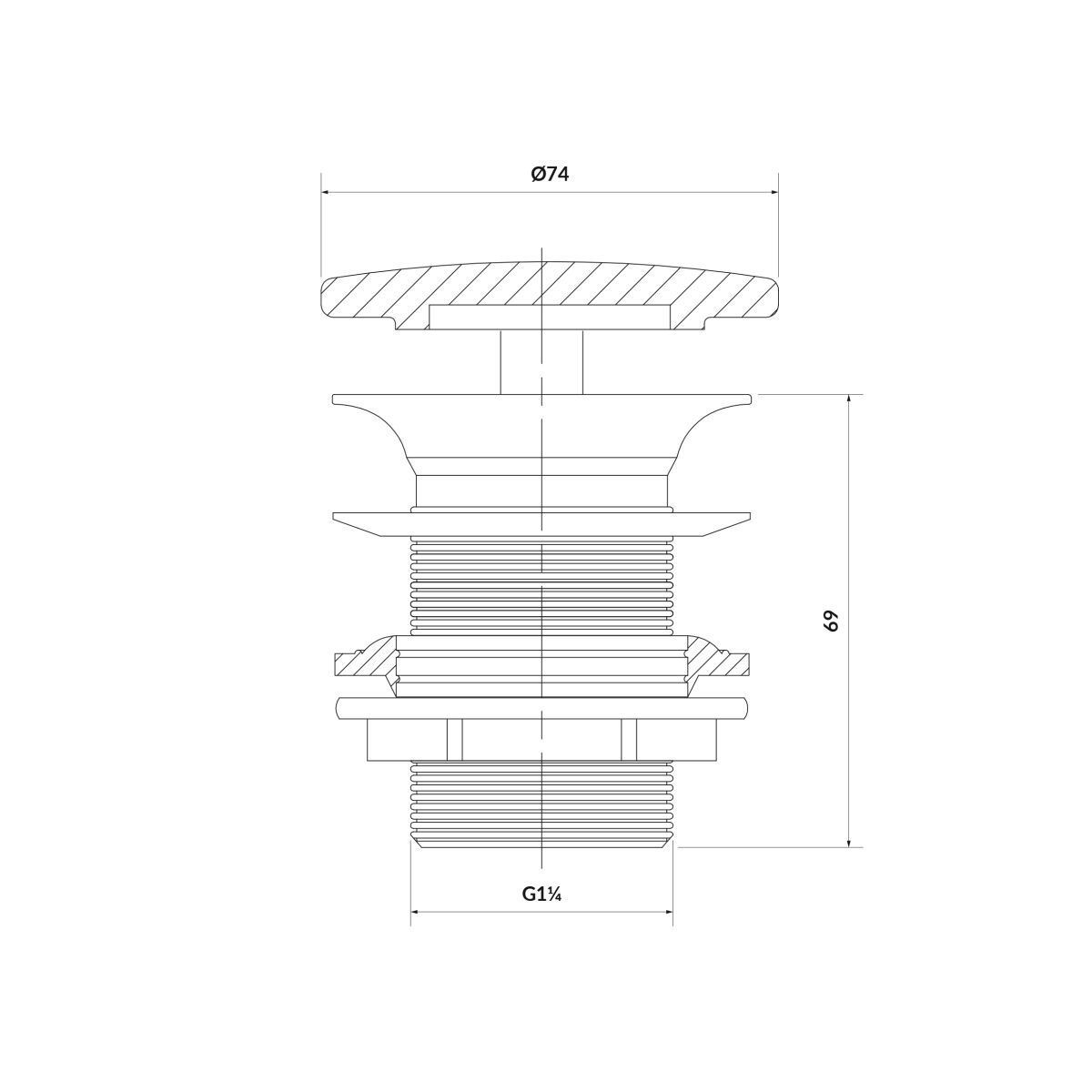 Weißer Keramikstopfen, Mechanismus aus strapazierfähigem Messing und mit Silikondichtungen ausgestattet. Dadurch sieht er elegant aus, ist aber auch dicht und zuverlässig, äußerst einfach in der Montage und Bedienung. Die Farbe des flachen Pilzes passt perfekt zur Farbe der Keramik. Für die Verwendung mit Waschbecken ohne Überlauf vorgesehen.