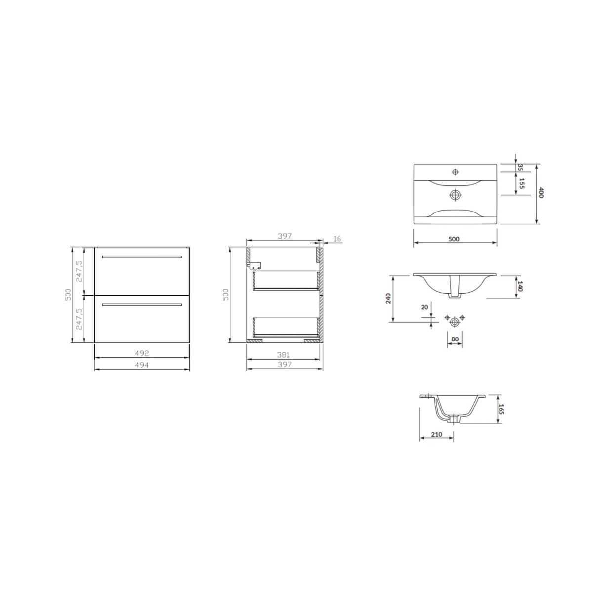 Das Set besteht aus einem weißen Hängeschrank 50 mit Waschbecken Ontario 50. Die Front und der Korpus des Schranks sind aus weiß lackierter Spanplatte gefertigt. Der Schrank verfügt über zwei geräumige Schubladen mit Soft-Close-Funktion und verchromten Griffen. Das Möbelstück ist zur Selbstmontage vorgesehen. Das Set lässt sich einfach und schnell zusammenbauen. Es bietet Platz für alle kleinen Badutensilien.