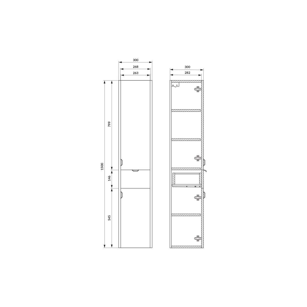 Cersanit Ovida Unterschrank 30x30x150 cm Seitenschrank hängend eiche S1058-012