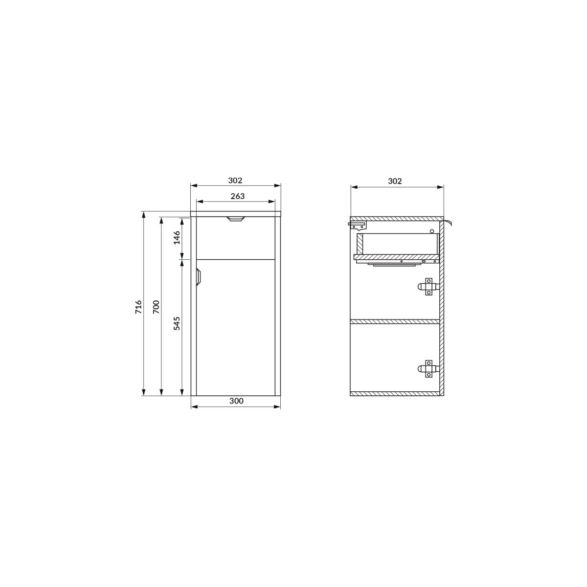 Cersanit Ovida Unterschrank 30x30x72 cm Seitenschrank hängend weiß S1058-005