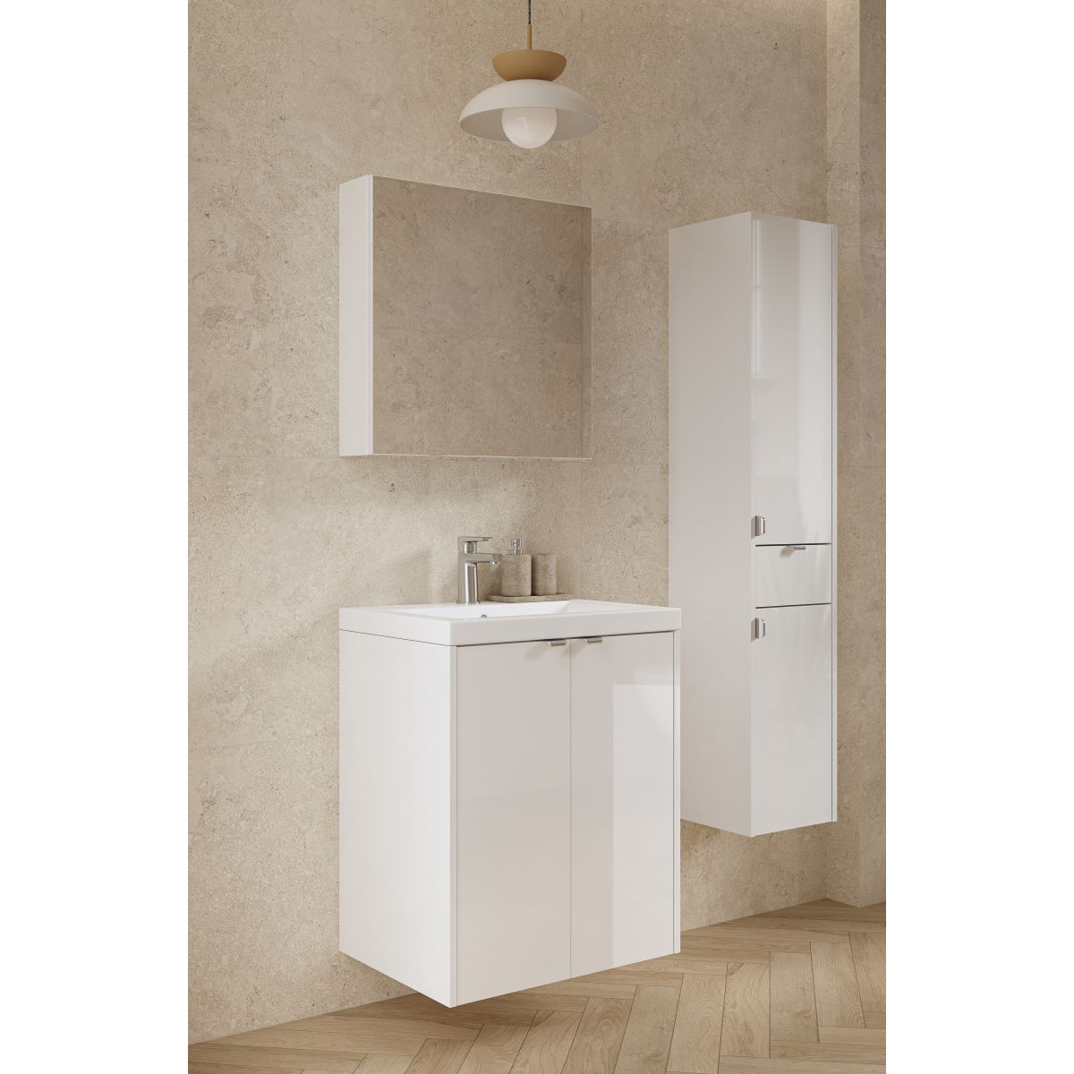 - Der weiße Spiegelschrank OVIDA 60 ist eine funktionale und elegante Lösung für das moderne Badezimmer, die die praktische Funktion eines Spiegels mit einem praktischen Stauraum verbindet. Die hängende Bauweise des Möbelstücks vergrößert den Raum optisch, hellt den Innenraum auf und verleiht dem Badezimmer Leichtigkeit und ein frisches Aussehen. Der Schrank ist mit einer Tür mit Spiegelfront und einem Einlegeboden ausgestattet – ideal zur Aufbewahrung von Alltagsaccessoires, Kosmetika und Kleinigkeiten.