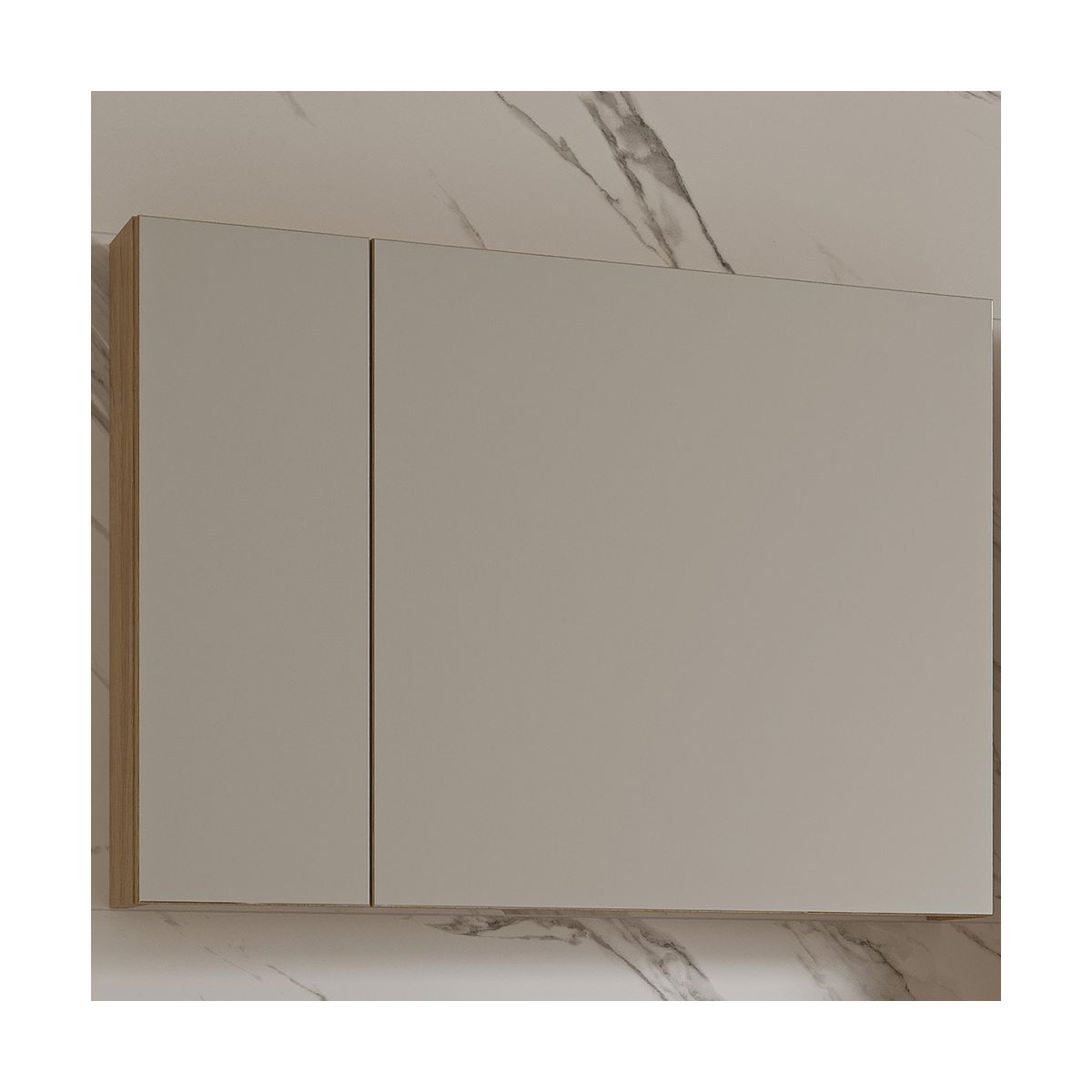 - Der Soft-Close-Mechanismus sorgt für ein leises und sanftes Schließen der Türen und erhöht so den Nutzungskomfort. Die spiegelnden Fronten verbinden Ästhetik mit Funktionalität, während der Korpus aus laminierter Spanplatte in der Farbe Hickory-Eiche für Langlebigkeit, eine ansprechende Optik und einfache Reinigung sorgt.