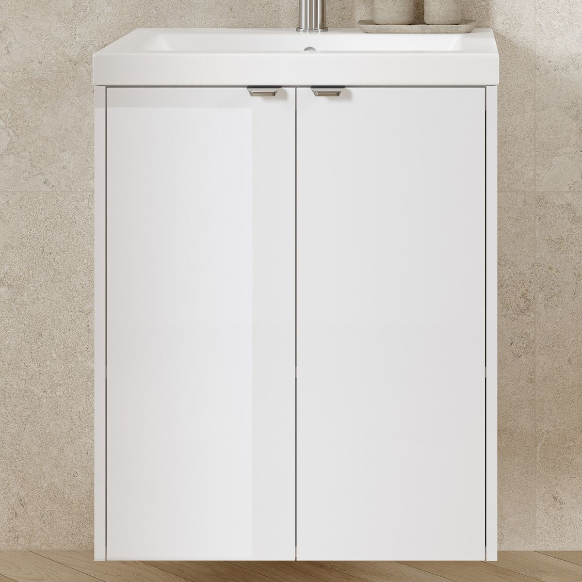 - Das Set OVIDA 60 in Weiß (Waschtischunterschrank + Keramikwaschbecken) ist eine vielseitige und ästhetische Lösung für das Badezimmer. Die helle, zeitlose Farbgebung verleiht dem Raum Frische und Leichtigkeit und fügt sich sowohl in moderne als auch in klassische Einrichtungsstile gut ein. Der Unterschrank ist mit zwei Türen und einem Einlegeboden ausgestattet, was einen praktischen Stauraum für Kosmetika, Pflegeprodukte und Badaccessoires bietet.
