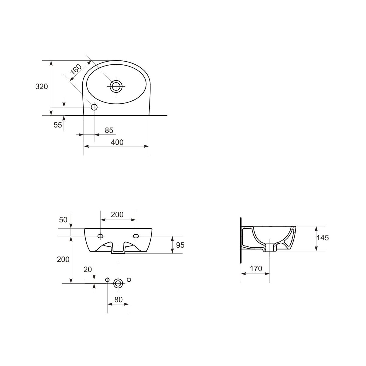 Cersanit Parva Waschbecken 40x32 cm halbrund Klassisch weiß K27-009-P