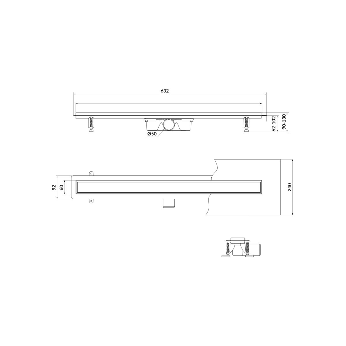 Die TAKO-Linienrinne ist aus hochwertigem, säurebeständigem Edelstahl gefertigt, der gegen Chemikalien beständig ist. Der eingebaute Siphon verfügt über einen speziellen Korb, der eine schnelle Reinigung des Abflusses von oben ermöglicht und einen schnellen Wasserfluss von bis zu 56 l/min gewährleistet. Im Lieferumfang des Linearablaufs sind alle für die Montage erforderlichen Elemente enthalten: Dichtungsmatte, Füße und Siphon. Der Abfluss verfügt über einen beidseitig drehbaren Rost, sodass Sie zwischen zwei Ausführungen wählen können – auf der einen Seite ist der Rost flach gebürstet, auf der anderen Seite befindet sich eine Aussparung zum Einkleben einer Fliese.