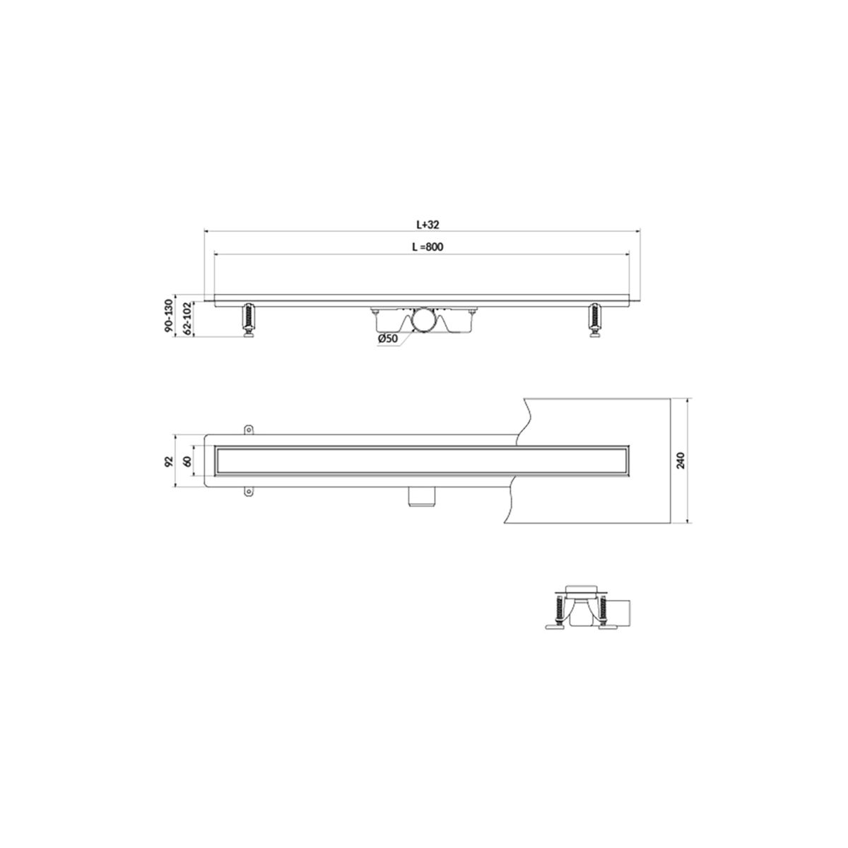 - Im Lieferumfang des Linearablaufs sind alle für die Montage erforderlichen Elemente enthalten (Dichtungsmatte, Füße und Siphon)