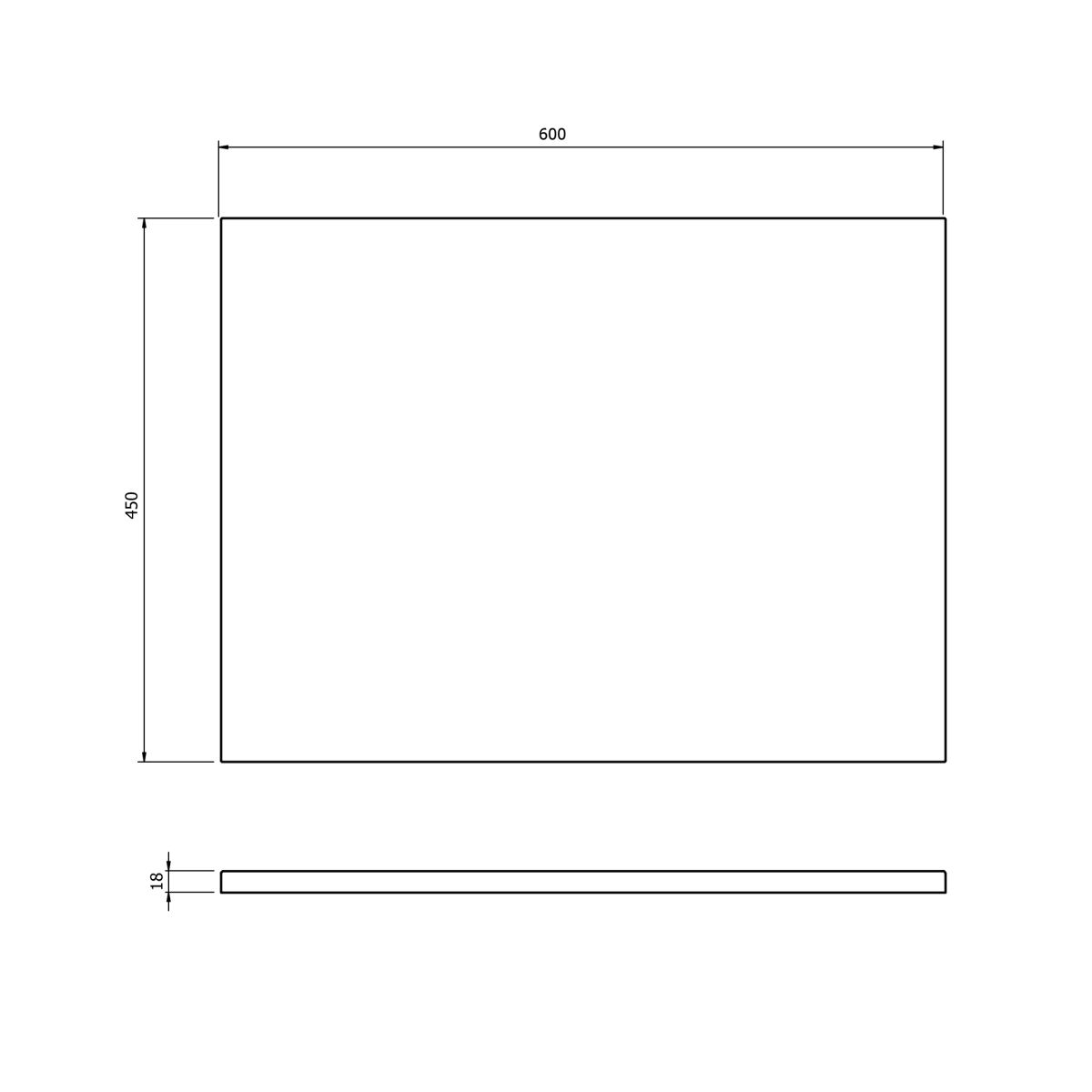 - Arbeitsplatte mit den Maßen 60 × 45 × 1,8