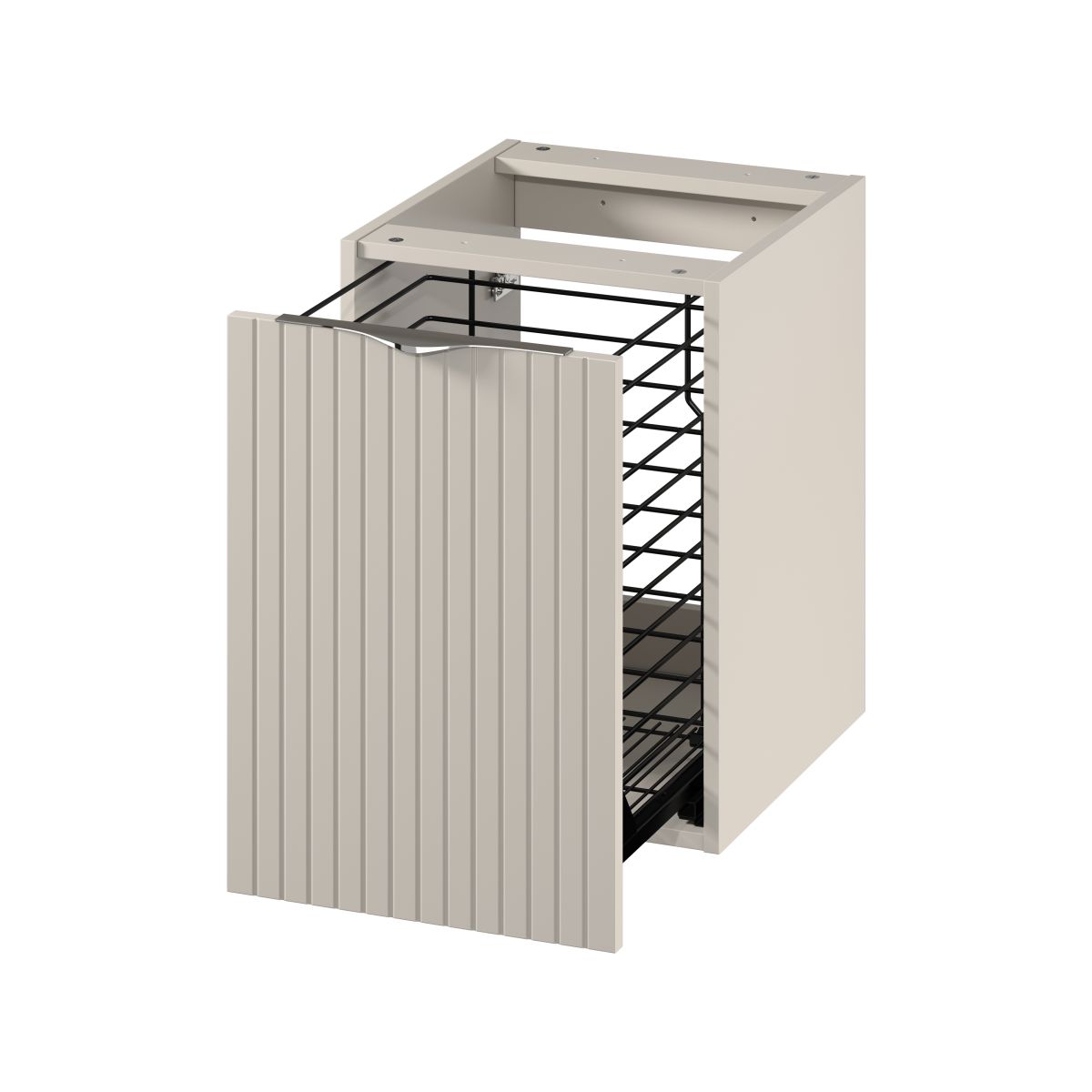 Der Unterbau-Badezimmerschrank mit ausziehbarem Metallkorb ist eine praktische Lösung für die Aufbewahrung von Kleidung. Dank des Ausziehmechanismus ist der Innenraum leicht zugänglich, und der versteckte Korb sorgt für Ordnung. Dank seiner Funktionalität und Bequemlichkeit eignet er sich hervorragend für jedes Badezimmer.