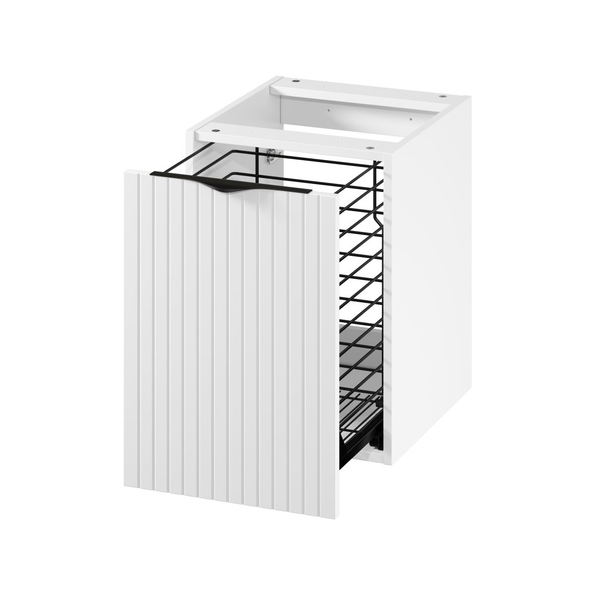 Der Unterbau-Badezimmerschrank mit ausziehbarem Metallkorb ist eine praktische Lösung für die Aufbewahrung von Kleidung. Dank des Ausziehmechanismus ist der Innenraum leicht zugänglich, und der versteckte Korb sorgt für Ordnung. Dank seiner Funktionalität und Bequemlichkeit eignet er sich hervorragend für jedes Badezimmer.