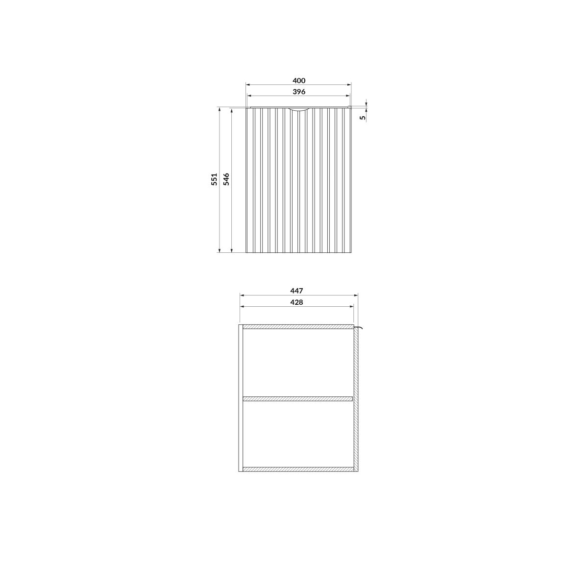 - Front: geriffelt, MDF-Platte mit matter Folie