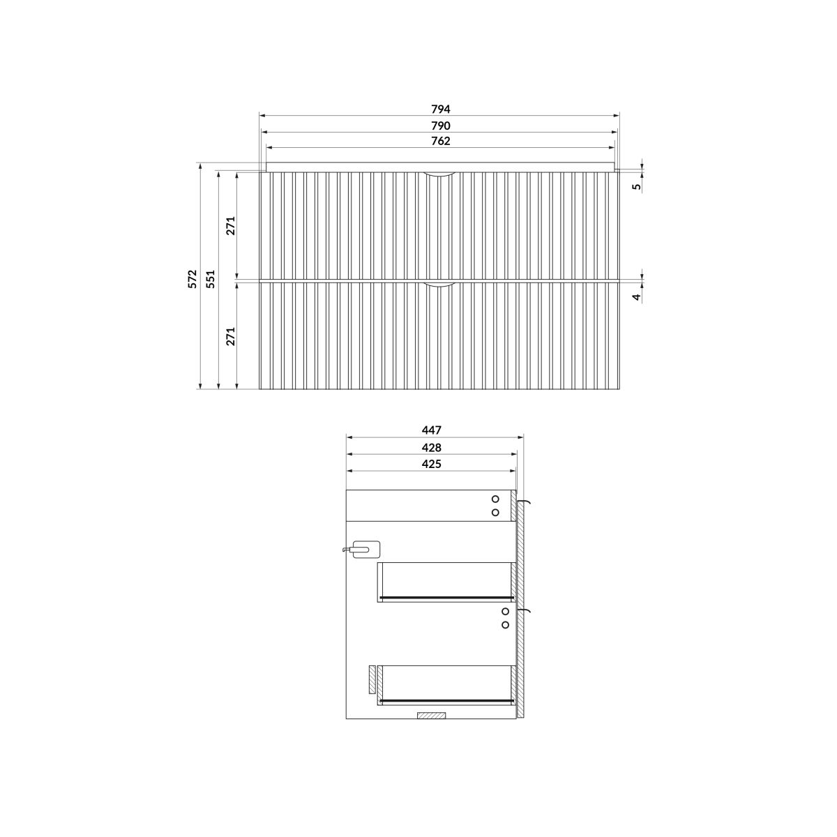 - Front: geriffelt, MDF-Platte mit matter Folie