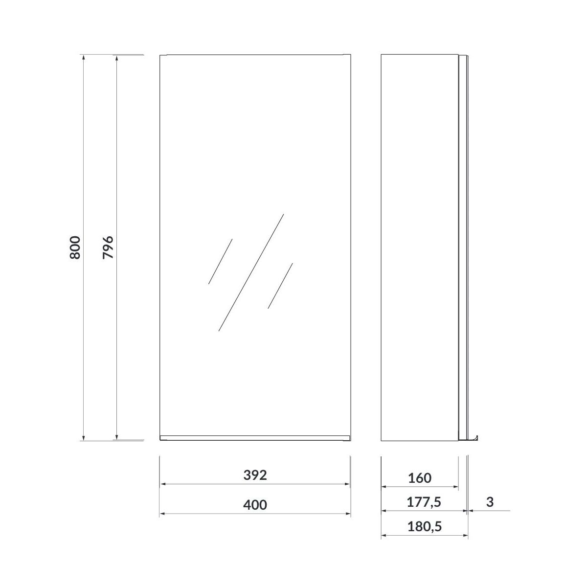 - Typ: Seitenschrank hängend, Spiegelschrank