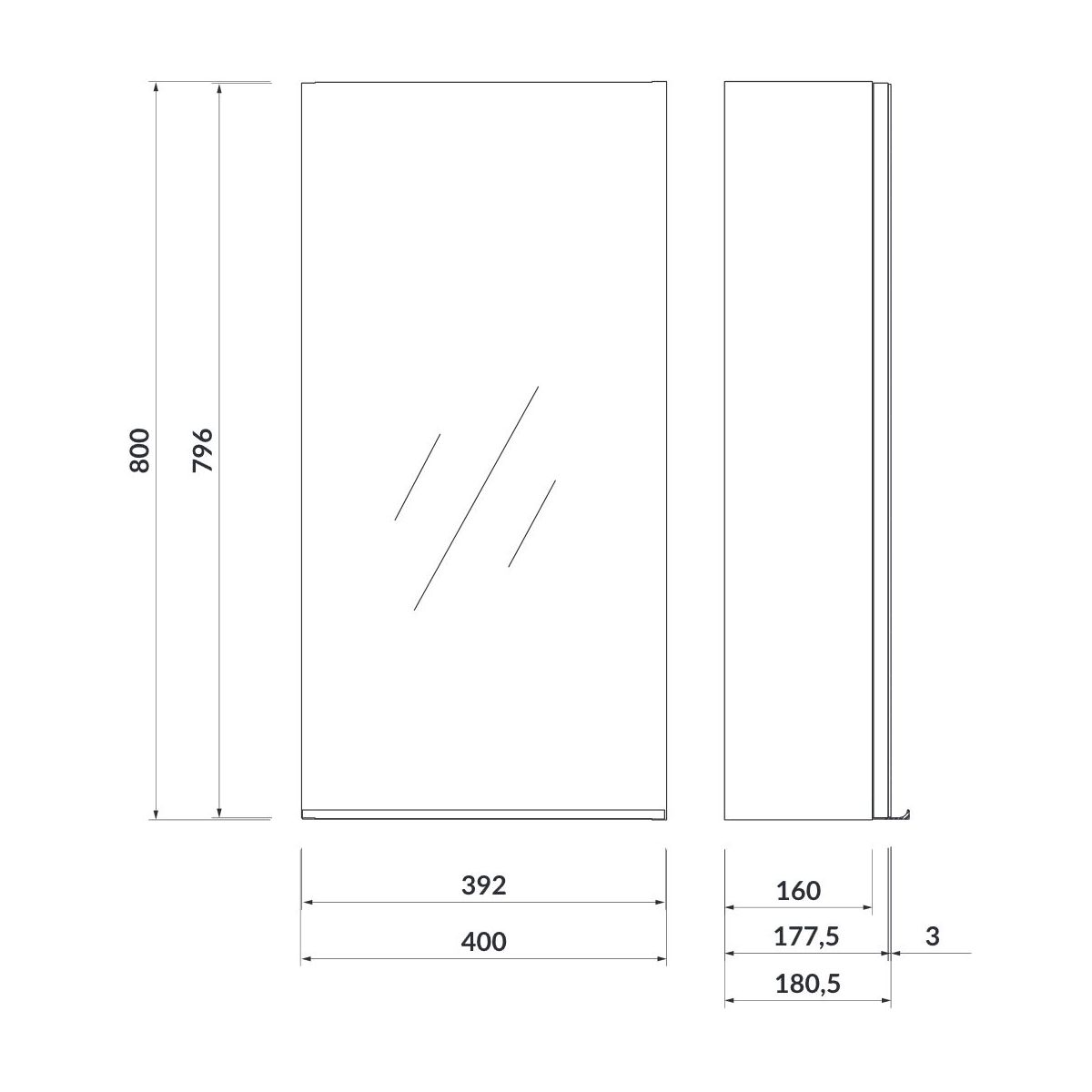- Typ: Seitenschrank hängend, Spiegelschrank