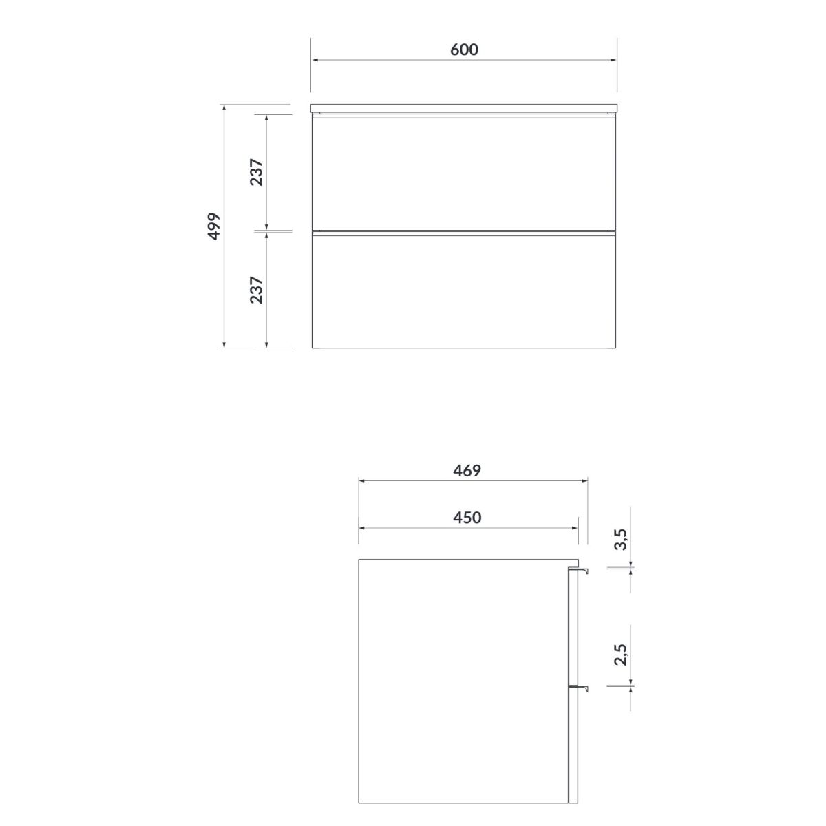 Cersanit Virgo Schrank mit Arbeitsplatte 60x46.9x49.9 cm Unterschrank hängend weiß S522-019