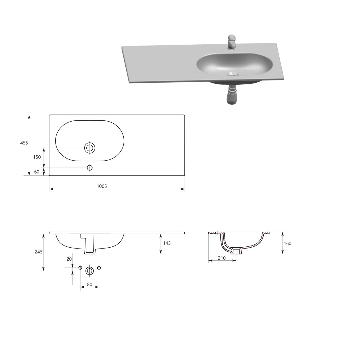 - Typ: Einbauwaschbecken
