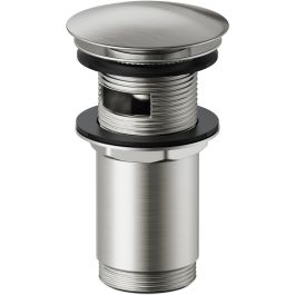 Universeller Waschbeckenstöpsel mit automatischem Klick-Klack-Mechanismus in Nickel, empfohlen für Waschbecken ohne Überlauf oder mit Überlauf. Der Stöpsel hat eine 2-jährige Garantie auf alle Teile.