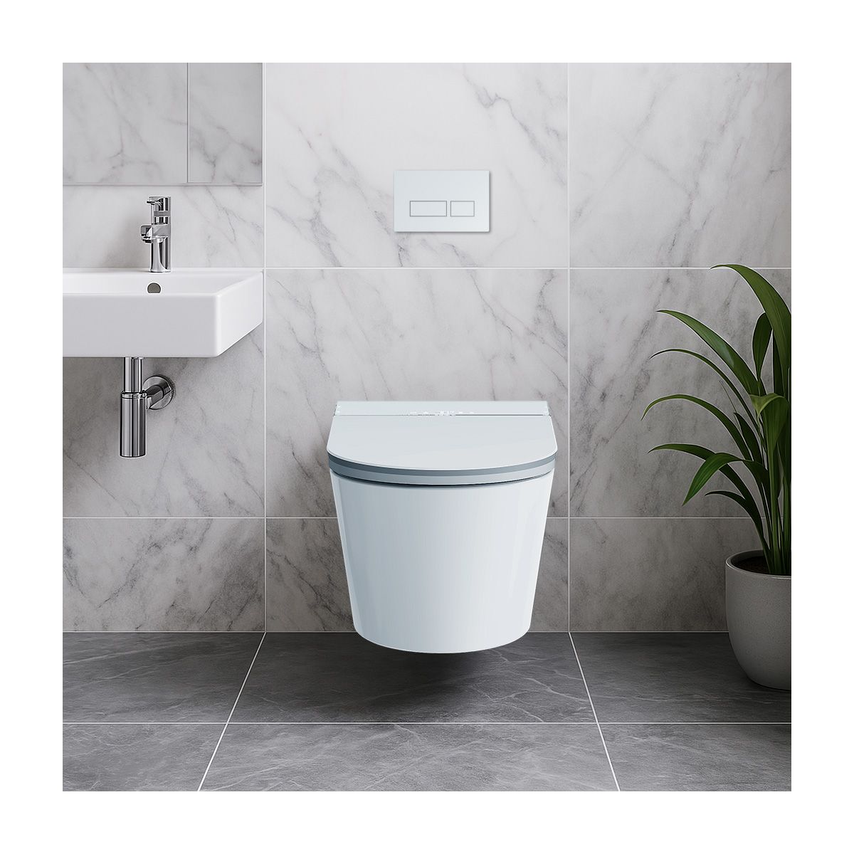 CleanWave Breeze 700 ist eine moderne intelligente Toilette, die unsere Vorstellung von täglicher Hygiene revolutioniert. Ausgestattet mit einem fortschrittlichen Unterputzgestell ist sie eine komplette Sanitärlösung, die hochwertige Keramik, moderne Technologie und ergonomisches Design vereint. Diese bahnbrechende Waschtischtoilette hebt Ihr Badezimmer auf ein völlig neues Niveau an Komfort und Hygiene und bietet eine Reihe intelligenter Funktionen, die selbst die Bedürfnisse der anspruchsvollsten Nutzer erfüllen. Das Produkt wurde mit Blick auf die perfekte Kombination von Funktionalität und Ästhetik entwickelt, sodass es sich perfekt in jedes moderne Badezimmer einfügt. Die elegante, minimalistische Form der CleanWave Breeze 700 macht sie nicht nur zu einem praktischen Ausstattungselement, sondern auch zu einem Schmuckstück für Ihr Badezimmer, das ihm einen exklusiven Charakter verleiht.