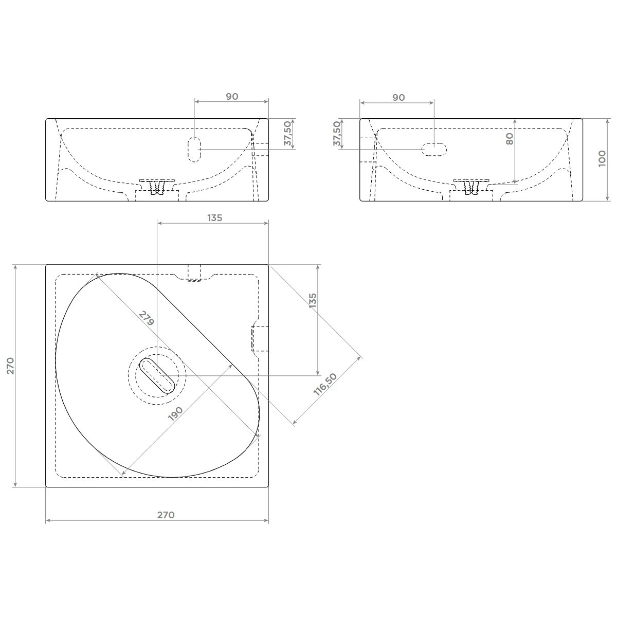 Clou Flush Waschbecken 27x27 cm quadratisch Klassisch-Aufsatzwaschbecken weiß CL/03.03051