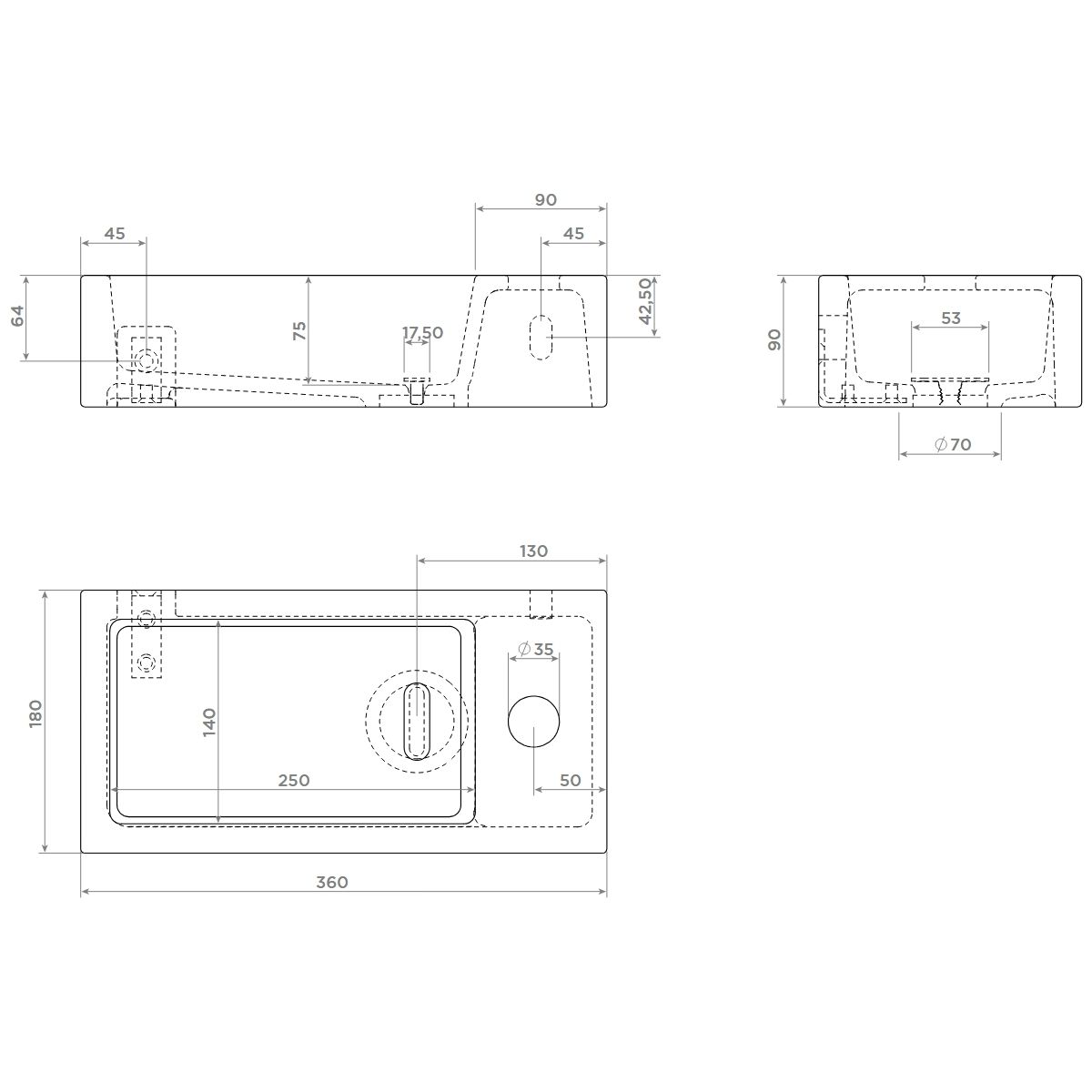 Clou Flush Waschbecken 36x18 cm rechteckig Klassisch-Aufsatzwaschbecken weiß CL/03.02030