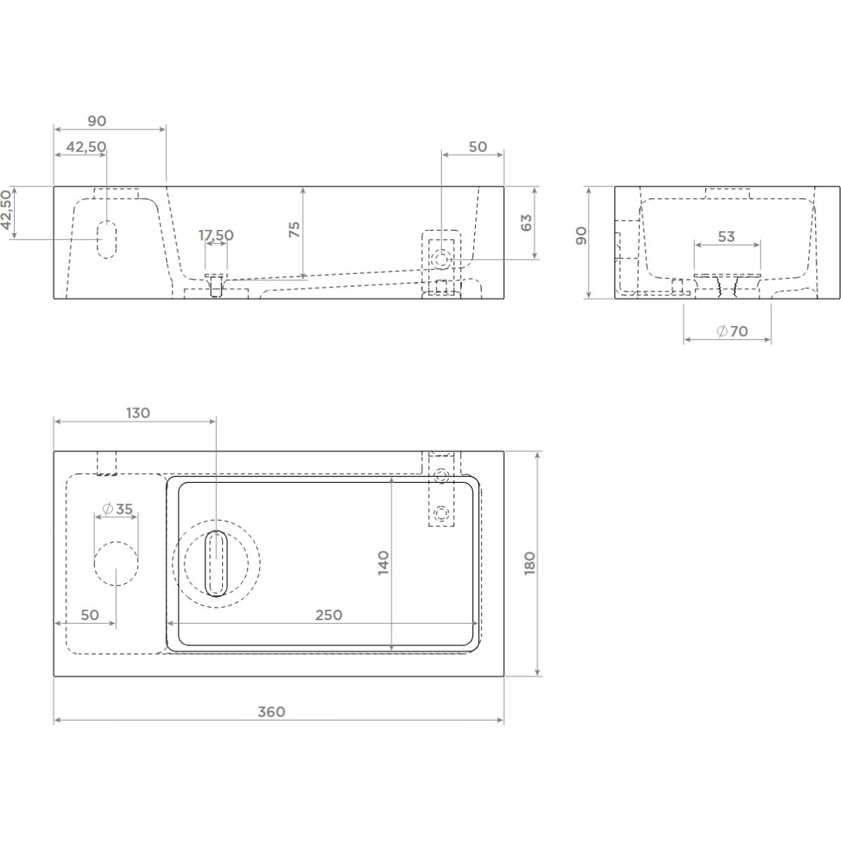Clou Flush Waschbecken 36x18 cm rechteckig Klassisch-Aufsatzwaschbecken weiß CL/03.13032