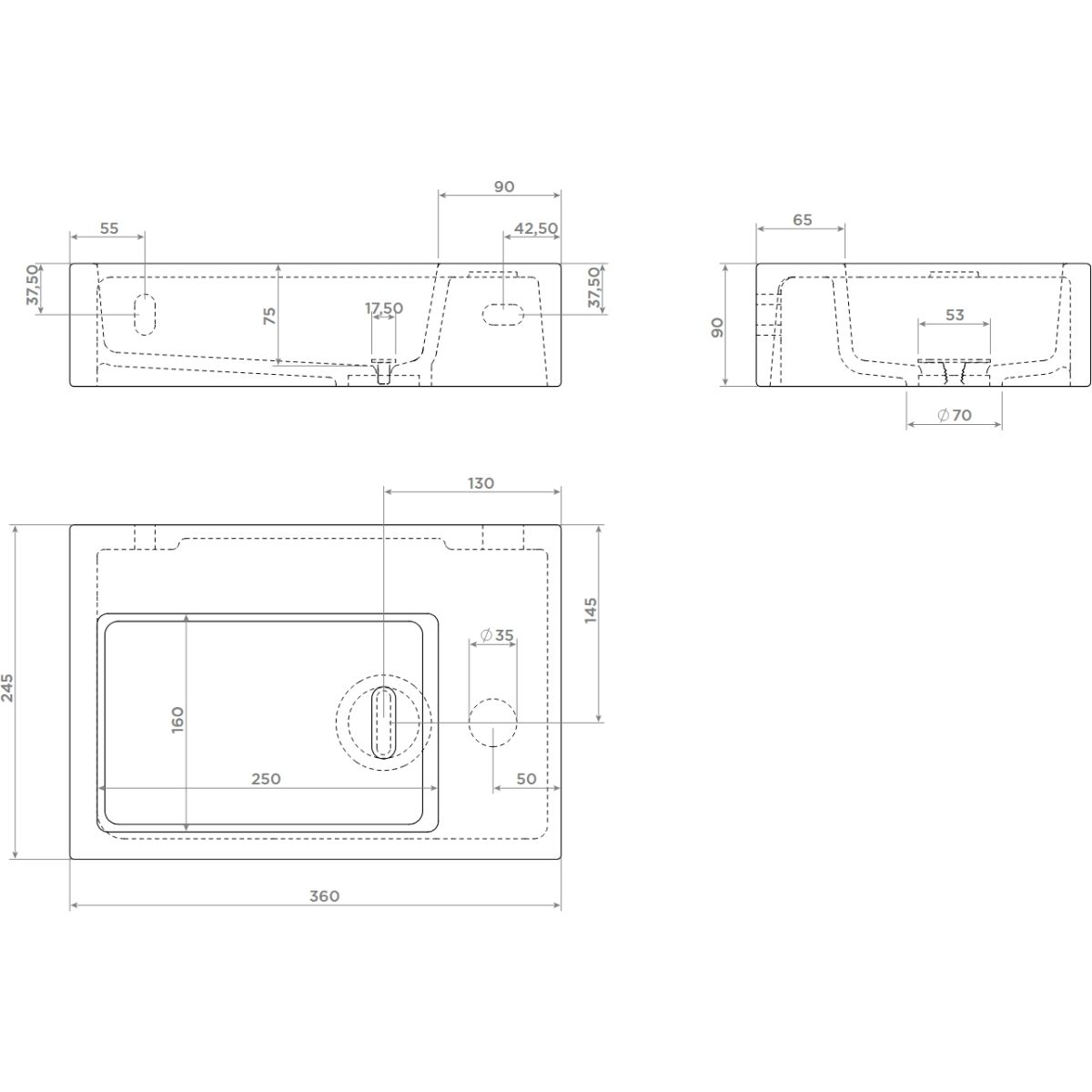 Clou Flush Waschbecken 36x24.5 cm rechteckig Klassisch-Aufsatzwaschbecken weiß CL/03.13021