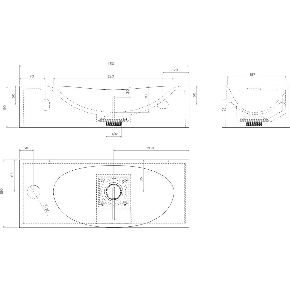 Clou Hammock Waschbecken 45x18 cm rechteckig Klassisch-Aufsatzwaschbecken weiß CL/03.08370
