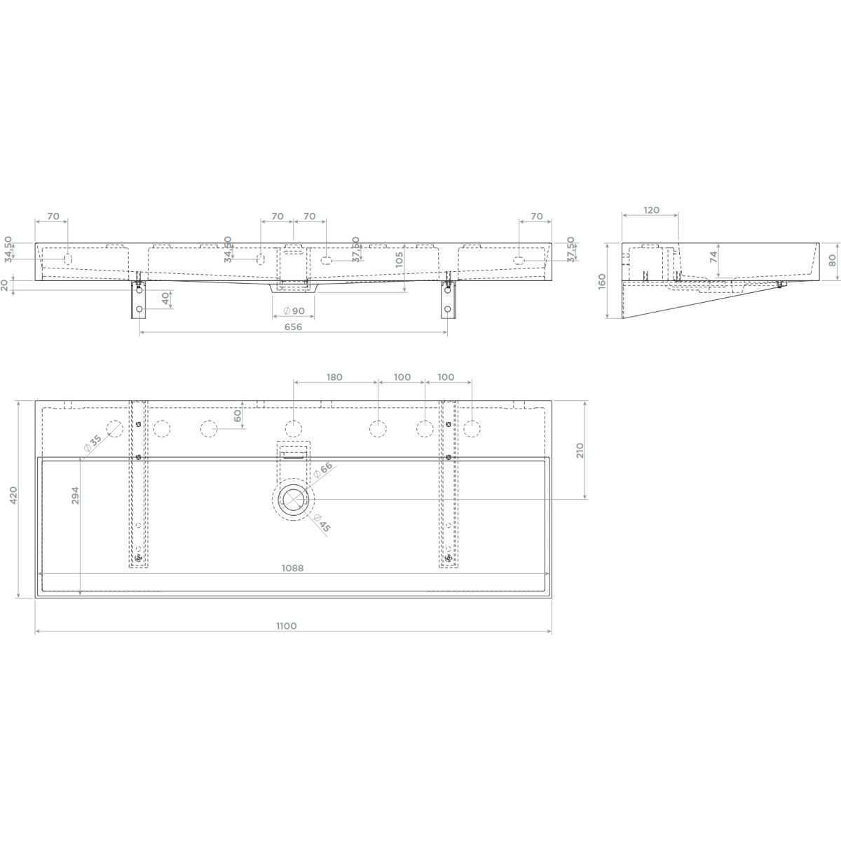 Clou New Wash Me Waschbecken 110x42 cm rechteckig Klassisch-Aufsatzwaschbecken weiß CL/02.01438