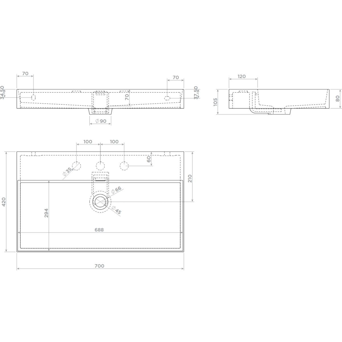 Der Preis gilt für das Waschbecken ohne Loch für die Armatur.