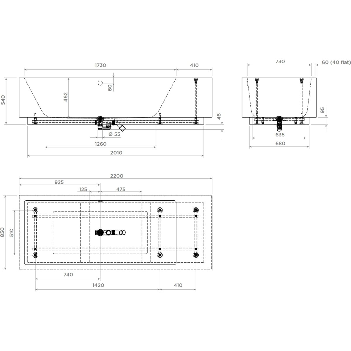 Clou Wash Me Freistehende Badewanne 220x85 cm rechteckig weiß CL/05.50010