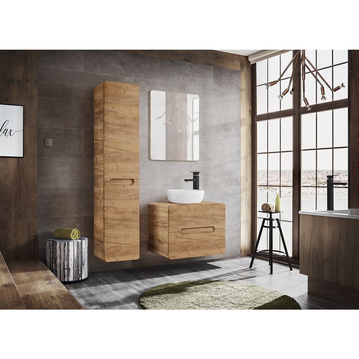 Aruba ist eine außergewöhnliche Kollektion, die durch ihr leichtes und modernes Design begeistert. Die Korpusse und Fronten in Holzfarbe bilden ein harmonisches Ganzes im Stil eines tropischen SPAs. Die abgerundeten Kanten aller Schränke verleihen der Kollektion einen originellen Charakter und Leichtigkeit, während die grifflosen Fronten den neuesten Einrichtungstrends entsprechen. Die Kollektion besteht aus niedrigen und hohen Schränken in verschiedenen Varianten, wodurch sich individuelle und einzigartige Kombinationen zusammenstellen lassen. Eine zweifellos interessante und äußerst modische Lösung ist der Schrank unter dem Waschbecken. Eine perfekte Ergänzung der Serie ist der Spiegel mit LED-Beleuchtung, der der gesamten Serie einen modernen Charakter verleiht. Die Kollektion Aruba wird allen gefallen, die nach originellen und modernen Lösungen für ihr Badezimmer suchen.