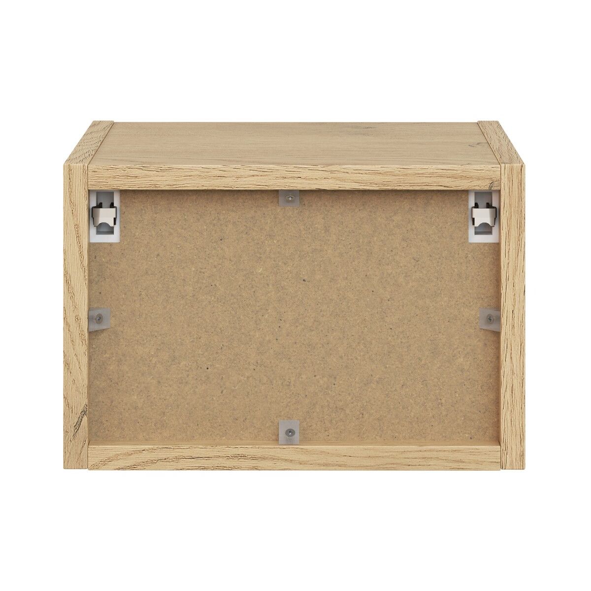Dieses 30 cm breite offene Regal ist ein subtiler Akzent, der natürliche Wärme und Ordnung in minimalistische Innenräume bringt. Das Möbelstück wurde sorgfältig in der Dekoration Cremona-Eiche verarbeitet, die die Schönheit von Naturholz originalgetreu wiedergibt und eine gemütliche Atmosphäre schafft. Die Konstruktion aus strapazierfähiger Laminatplatte sorgt für Robustheit und lange Lebensdauer. Dank der vollständigen Kompatibilität mit der Kollektion Dalia Cashmere können Sie Ihren Raum frei gestalten und ihm einen ausdrucksstarken Charakter und einen einheitlichen Stil verleihen.