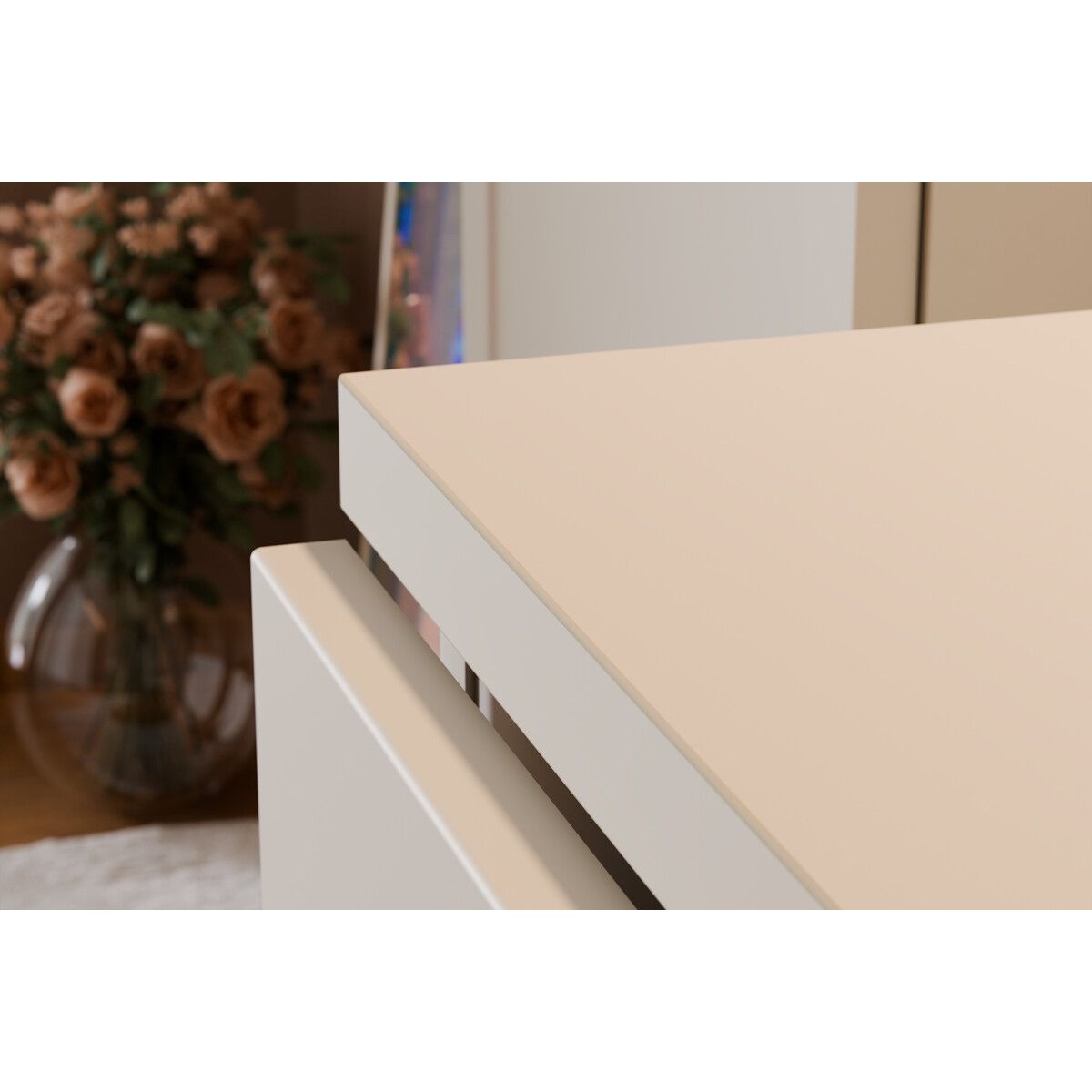 Die 60 cm lange Arbeitsplatte in der Ausführung Beige Sand ist eine elegante Harmonie warmer Farbtöne, inspiriert von Subtilität, die perfekt zur Kollektion Donna Sand passt. Sie besteht aus MDF-Platten und PVC-Folie und sorgt für ein ästhetisches Aussehen über viele Jahre hinweg. Die polnische Produktion auf Basis von FSC-zertifizierten Materialien garantiert Qualität und Langlebigkeit.