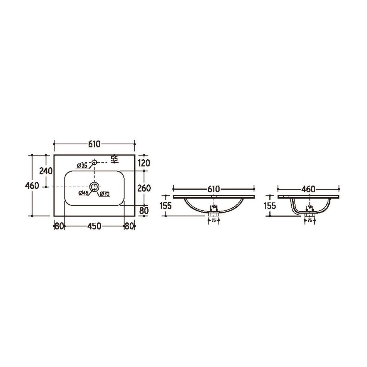 Comad Fly Waschbecken 61x46 cm rechteckig Möbel weiß FLY WHITE GLOSS UM 60-46 DP ( E-8073-60 )