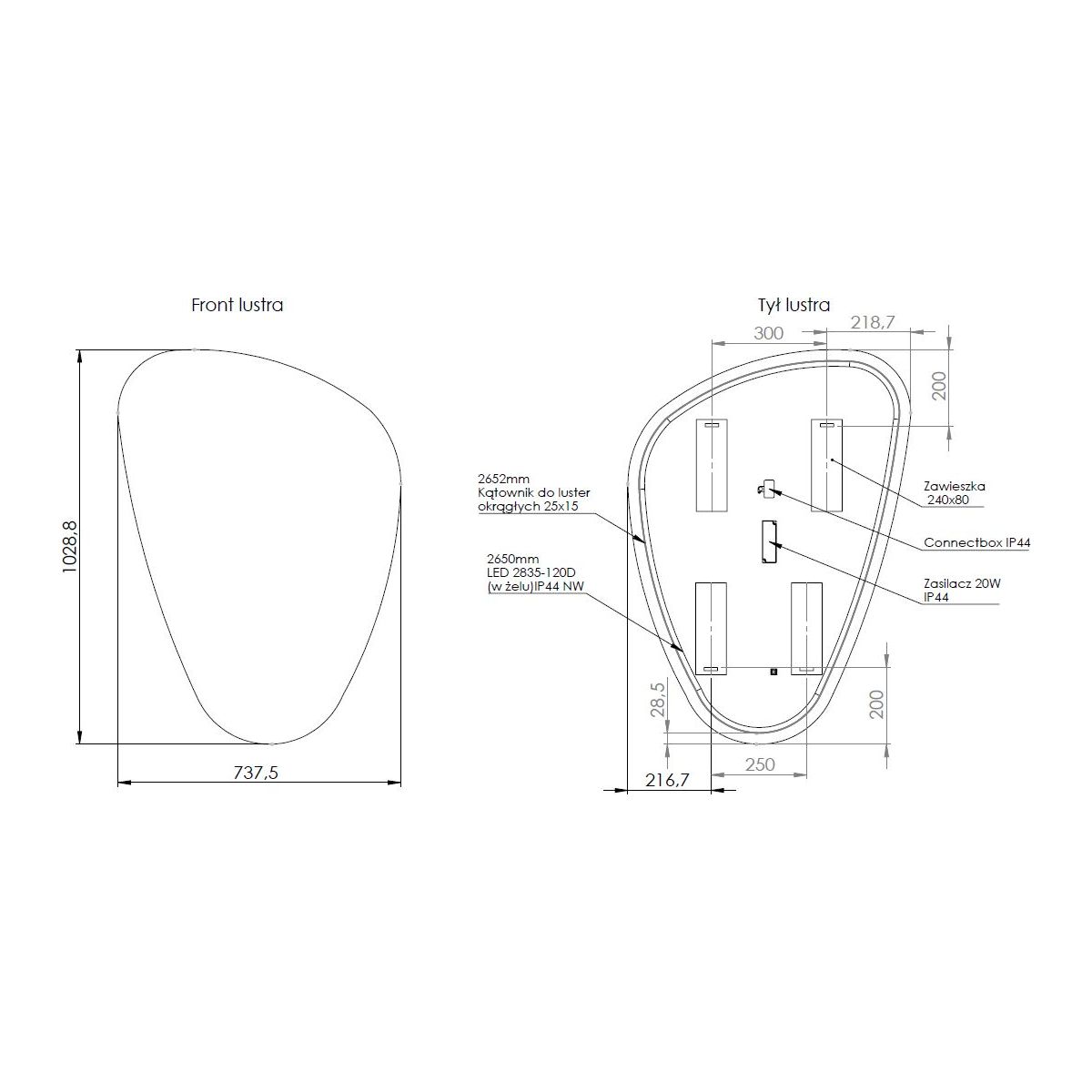 Comad Impala Spiegel 73.8x102.9 cm mit Beleuchtung LUSTRO LED IMPALA