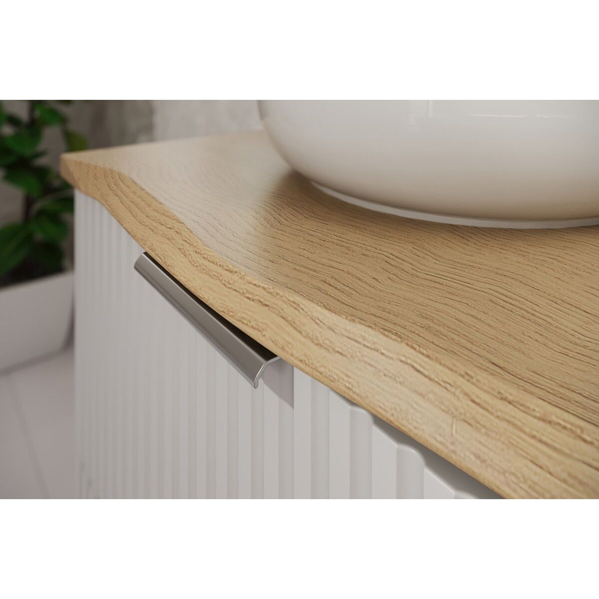 Die 120 cm lange Arbeitsplatte aus der Kollektion Nature ist ein von echtem Holz inspiriertes Produkt – ihre unregelmäßige, leicht gewellte Kante imitiert ein natürlich geschnittenes Stück Holz und verleiht dem Innenraum eine authentische und gemütliche Atmosphäre. Die Oberfläche in der Dekorausführung Eiche Cremona verleiht dem Ganzen Wärme und visuelle Leichtigkeit. Die Arbeitsplatte wurde speziell für Waschbeckenschränke mit einer Tiefe von 46 cm entworfen, mit denen sie eine harmonische und funktionale Kombination bildet. Die Ausführung aus MDF-Platten und PVC-Folie sorgt für ein ästhetisches Aussehen, das viele Jahre lang erhalten bleibt.