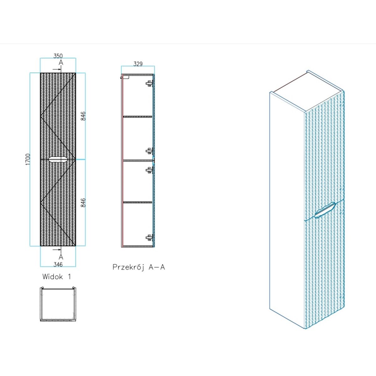 Comad Ocean Black Kabinett 35x33x170 cm schwarz-eiche OCEAN BLACK 80-02-2D