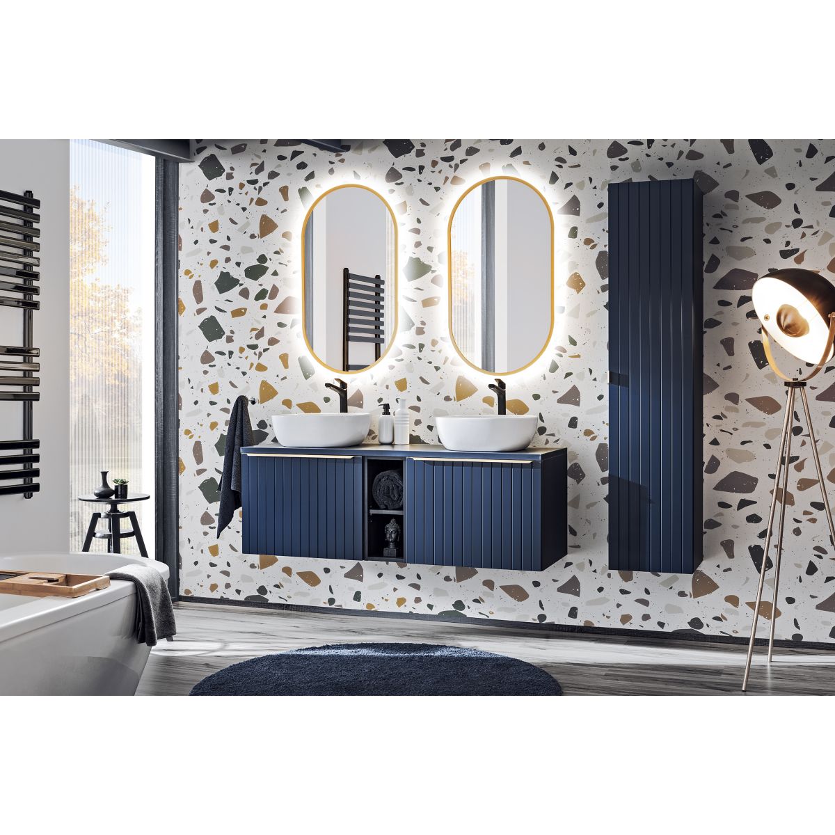 Comad Santa Fe Deep Blue Spiegel 50x90 cm oval mit Beleuchtung gold LUSTROAPOLLO