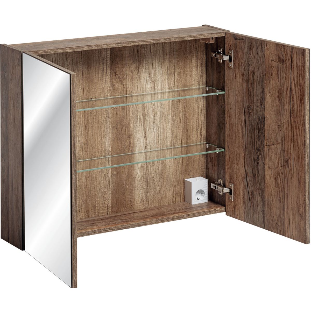 Der Spiegelschrank aus der Kollektion Santa Fe Oak ist die perfekte Ergänzung zu den anderen Produkten dieser Serie. Der Schrank verfügt standardmäßig über Glasböden und eine Innenbeleuchtung, was die Planung des Badezimmers erheblich erleichtert.