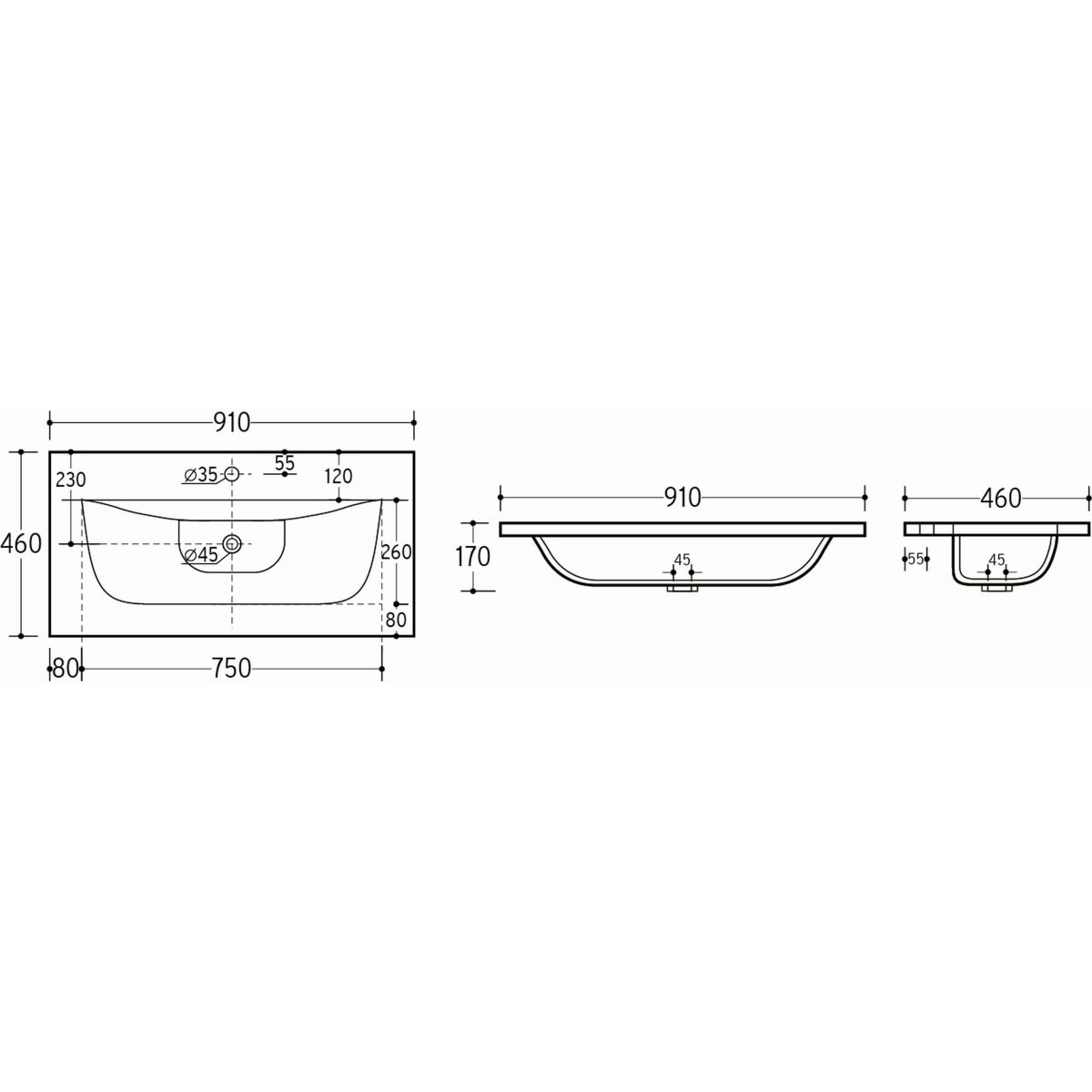 Comad Sky Waschbecken 91x46 cm rechteckig Einbauwaschbecken weiß SKY90/DP-8099