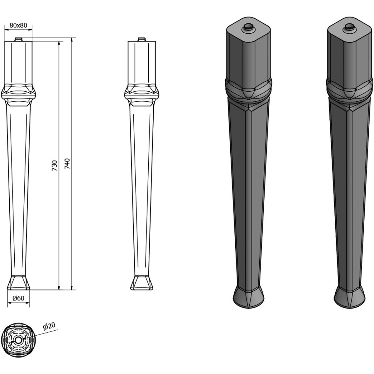 - Füße für Waschbecken ANTIK AN080 und AN100