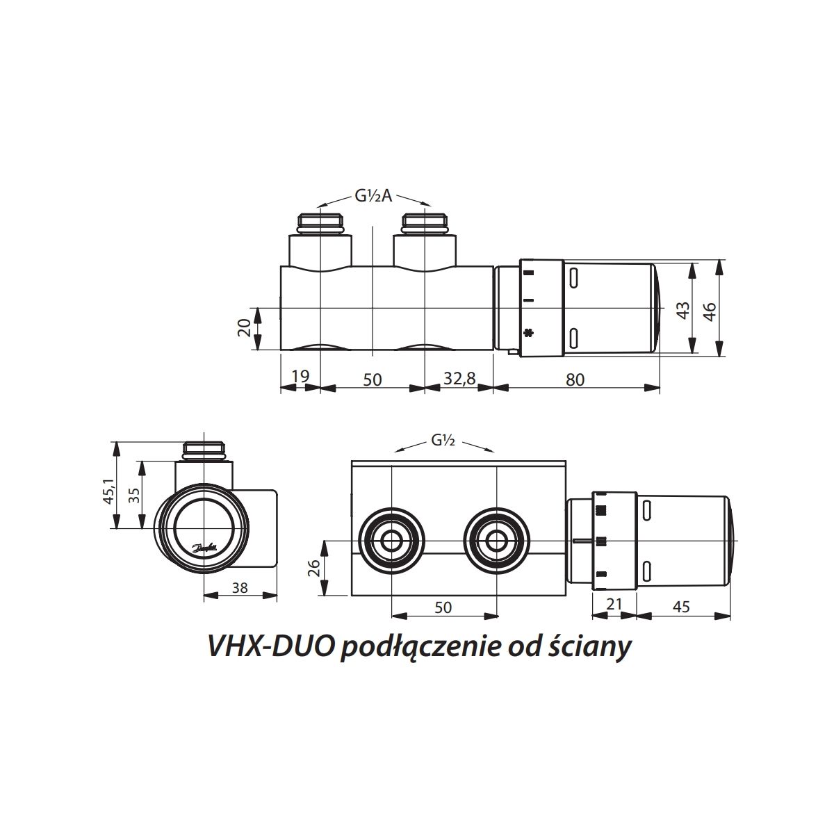 - Das VHX-Ventil reguliert den Wasserfluss aus dem Heizkörper, daher sollte der Rücklaufstutzen des Heizkörpers auf der Seite des Thermostatkopfes des Sets liegen