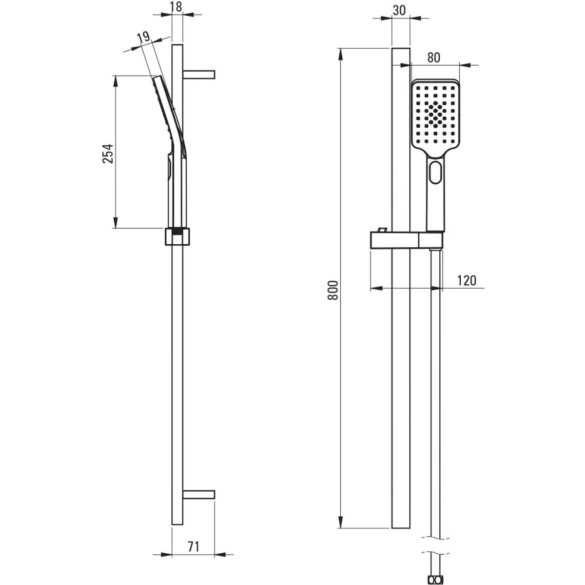 - Stange aus Stahl mit Halterung und einstellbarem Neigungswinkel für den Duschkopf