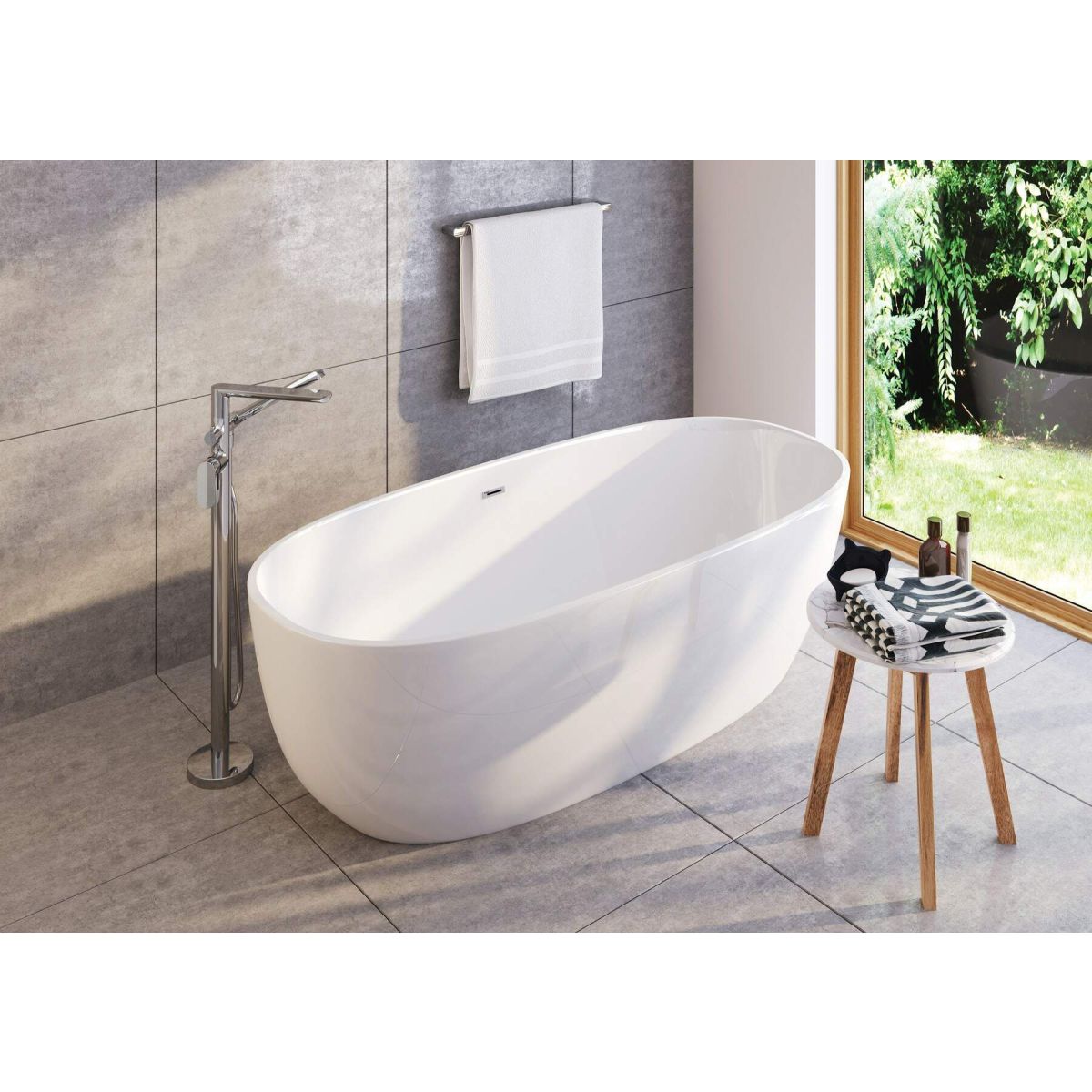Die freistehende Badewanne Alpinia verbindet modernen Stil mit maximalem Badekomfort. Die Oberfläche der Badewanne ist vollkommen glatt und leicht zu reinigen. Sie besteht aus hochwertigem Acryl. Im Angebot von Deante finden Sie spezielle freistehende Armaturen.