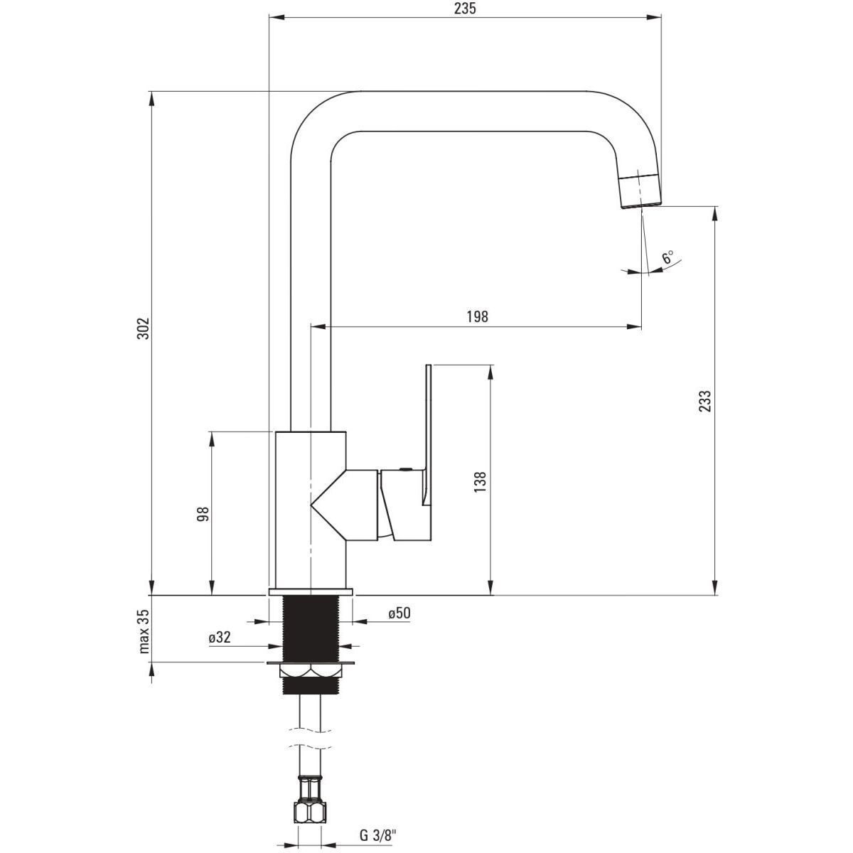 - Anschlussgewinde: 3/8'', M10