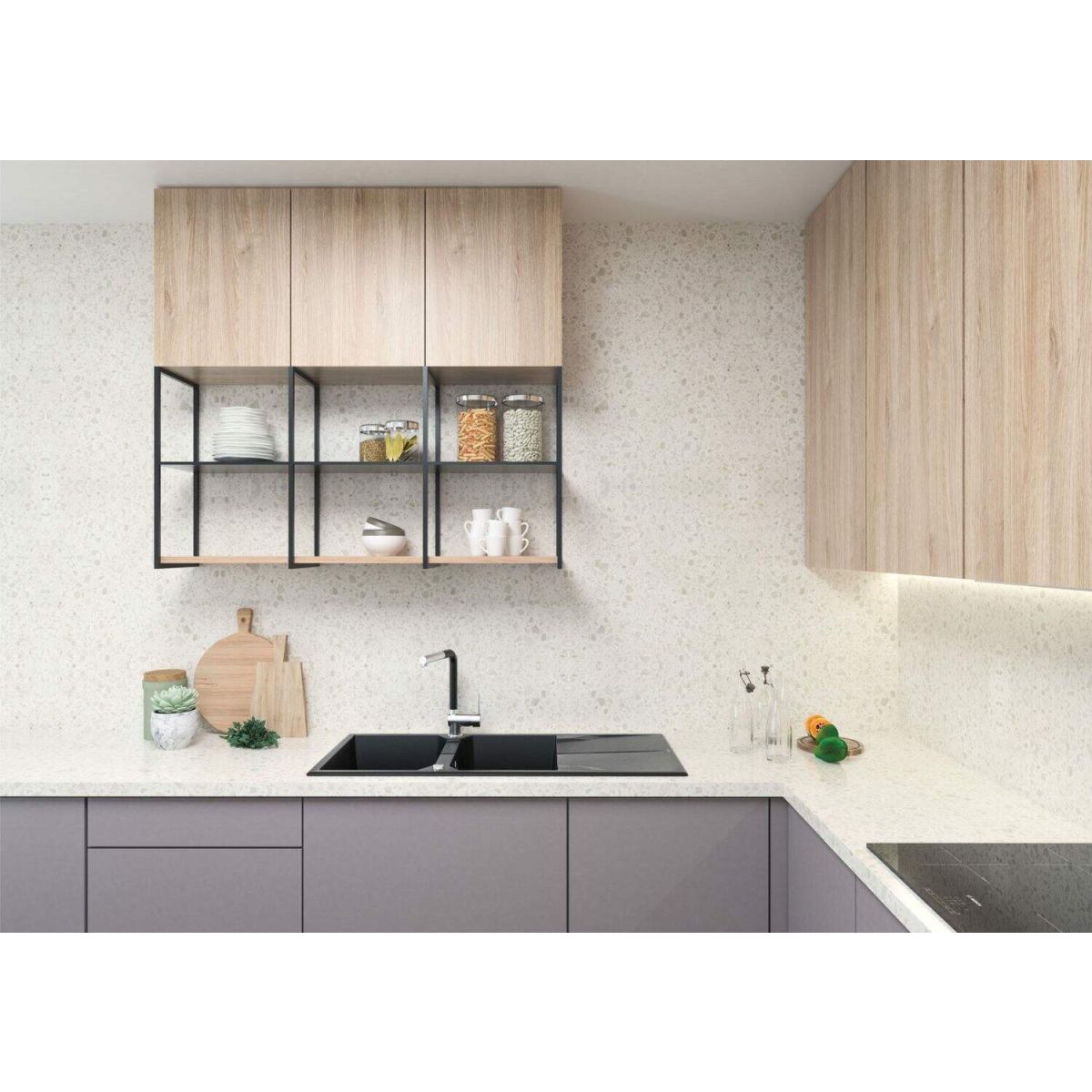Die Granit-Spüle Andante mit zwei geräumigen, rechteckigen Becken und Abtropffläche ist ein Produkt, das modernes Design und hochwertige Verarbeitung aus einem Material von bester Qualität, nämlich einer edlen Granitmischung, perfekt miteinander verbindet. Dank ihres schmalen und niedrigen Randes fügt sich die Einbauspüle Andante harmonisch in die Arbeitsplatte ein. Die zwei besonders tiefen, vergrößerten Kammern werden Liebhaber des Kochens begeistern und eignen sich perfekt für moderne Küchen, in denen Ergonomie und Funktionalität mit Eleganz, zeitlosem Design und hochwertigen Materialien einhergehen. Die Spülbecken dieser Kollektion sind aus extrem hartem und widerstandsfähigem Granit gefertigt und zeichnen sich durch Beständigkeit gegen Verfärbungen, Kratzer, Temperaturschocks, Temperaturen von bis zu 250 Grad sowie Stöße aus. Andante-Spülbecken haben außerdem wasserabweisende Eigenschaften, was bedeutet, dass ihre Oberfläche nicht nur keine Wassermoleküle durchlässt, sondern diese auch abweist, wodurch sie viel leichter sauber zu halten sind. Zum Spülbecken können Sie einen Haken und eine Reling aus dem Deante-Sortiment hinzukaufen.