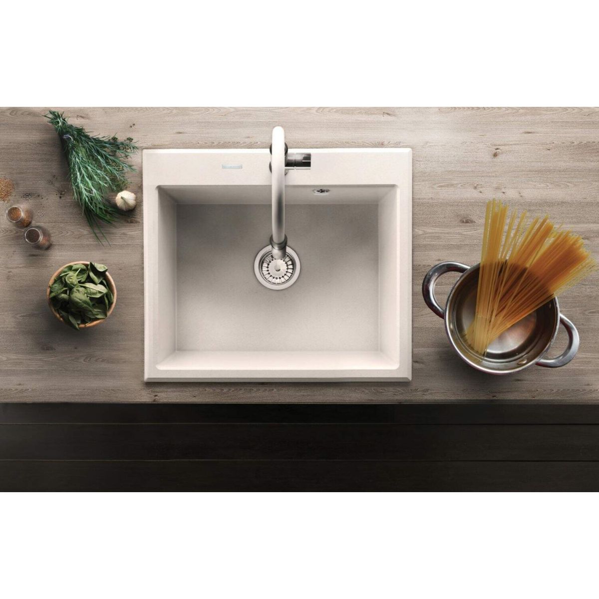 Die Granitspüle aus der Andante-Kollektion ist eine großartige Wahl für Fans moderner Lösungen. Sie besticht nicht nur durch ihr interessantes und auffälliges Design, sondern auch durch innovative Technologie. Für die Herstellung wurde ein widerstandsfähiger Granitverbundstoff verwendet, der eine hohe Beständigkeit gegen äußere Einflüsse gewährleistet. Die Oberfläche ist somit kratzfest, farbbeständig, widerstandsfähig gegen Beschädigungen und sogar gegen hohe Temperaturen – gemäß der europäischen Norm PN-EN 13310. Durch die zusätzliche Verwendung spezieller Pflegeprodukte bleibt die Oberfläche länger in einem hervorragenden Zustand. Praktisch ist auch die Größe der Spüle, die sogar große Töpfe und Backbleche aufnehmen kann. Ein weiterer wichtiger Vorteil dieses Modells ist die automatische Verschließung des Abflusses und das platzsparende System im Schrank.