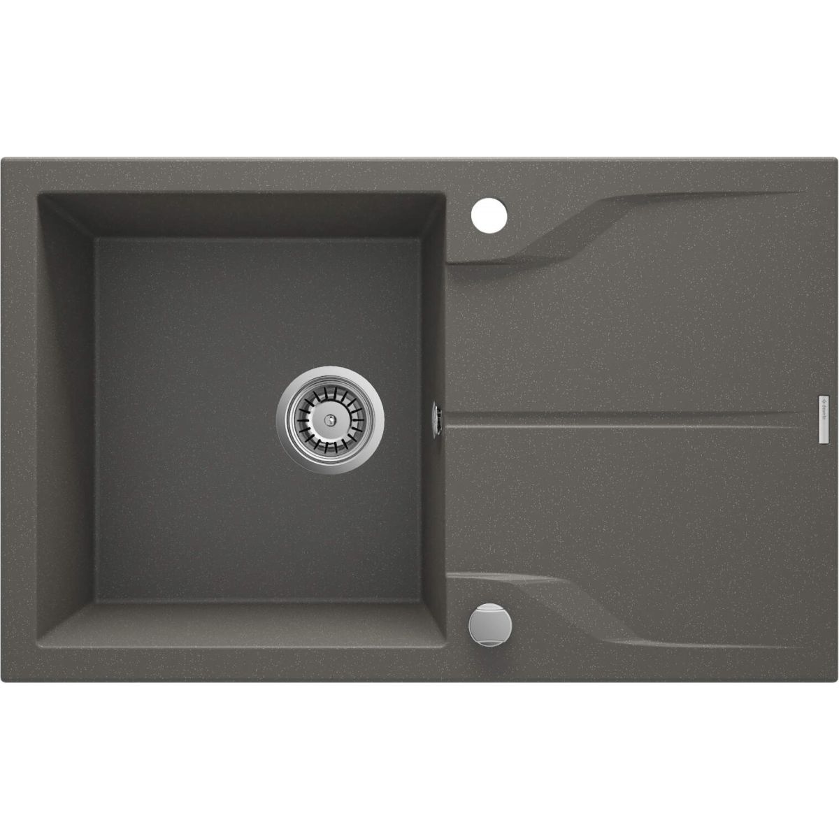 Die Granitspüle Andante mit einem Becken, einem geräumigen, rechtwinkligen Becken und einem effektvollen Abtropffeld ist ein Produkt, das modernes Design und beste Materialqualität, nämlich eine edle Granitmischung, perfekt miteinander verbindet. Dank seines schmalen und niedrigen Randes fügt sich die Spüle Andante in elegantem Anthrazit perfekt in die Arbeitsplatte ein. Die besonders tiefen, vergrößerten Kammern werden Liebhaber des Kochens begeistern und eignen sich perfekt für moderne Küchen, in denen Ergonomie und Funktionalität mit Eleganz, zeitlosem Design und hochwertigen Materialien einhergehen. Die Spülbecken dieser Kollektion sind aus extrem hartem und widerstandsfähigem Granit gefertigt und zeichnen sich durch Beständigkeit gegen Verfärbungen, Kratzer, Temperaturschocks, Temperaturen von bis zu 250 Grad sowie Stöße aus. Andante-Spülbecken haben außerdem hydrophobe Eigenschaften, was bedeutet, dass ihre Oberfläche Wasserpartikel nicht nur nicht durchlässt, sondern auch abweist, wodurch sie viel leichter sauber zu halten sind.