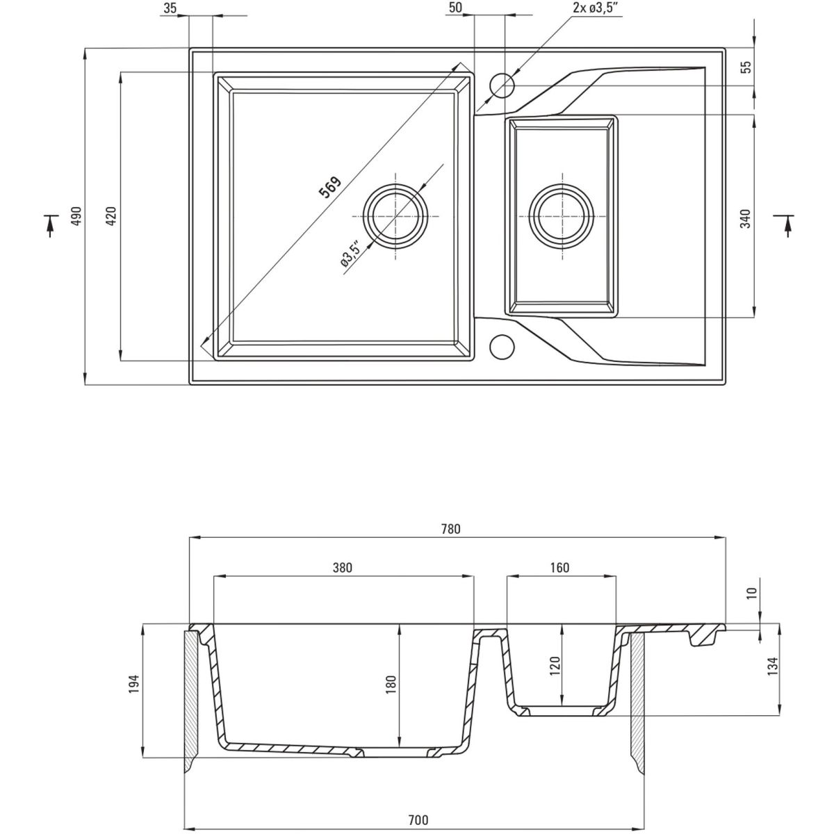 - Abflussdurchmesser: 3,5''