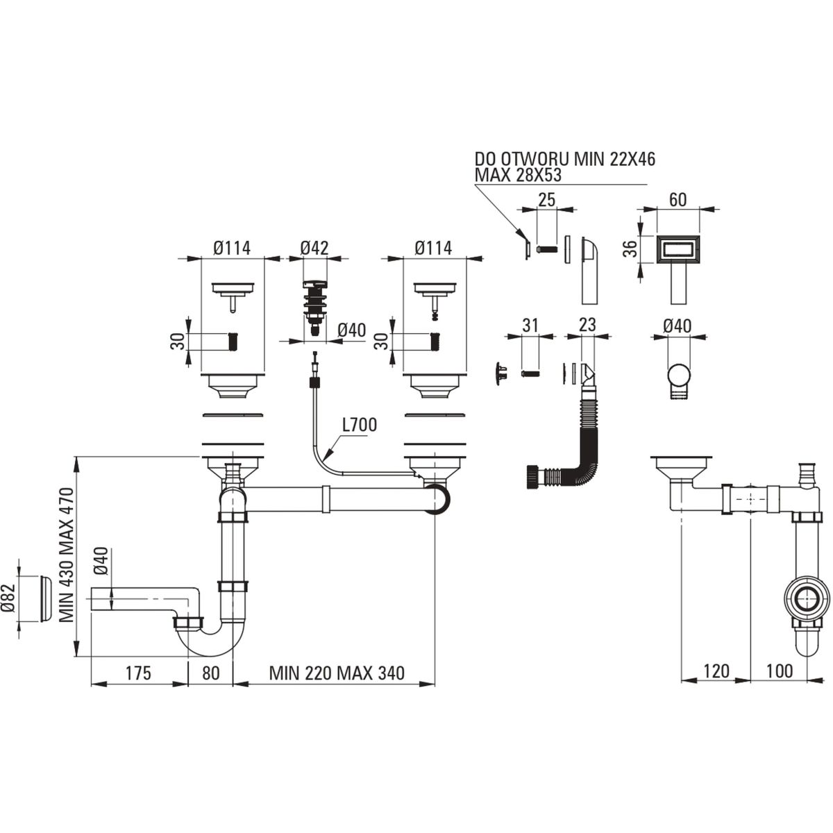 - Platzsparender Siphon, der u. a. die Mülltrennung erleichtert